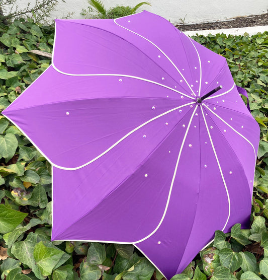 Purple Swirl Umbrella With Aurora Borealis Rhinestones | Decorated By Hand | Waterproof and Great for Shade