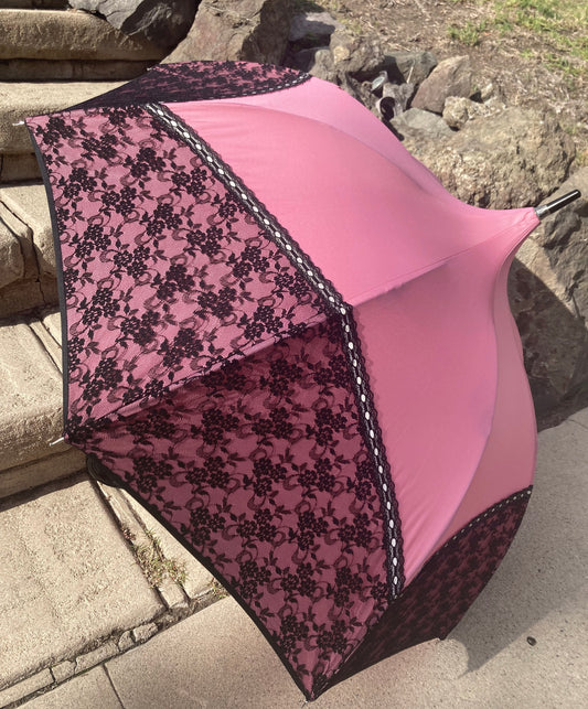 Lolita Umbrella Coral Blush | Black Satin Bows | Handmade in France | Free Shipping