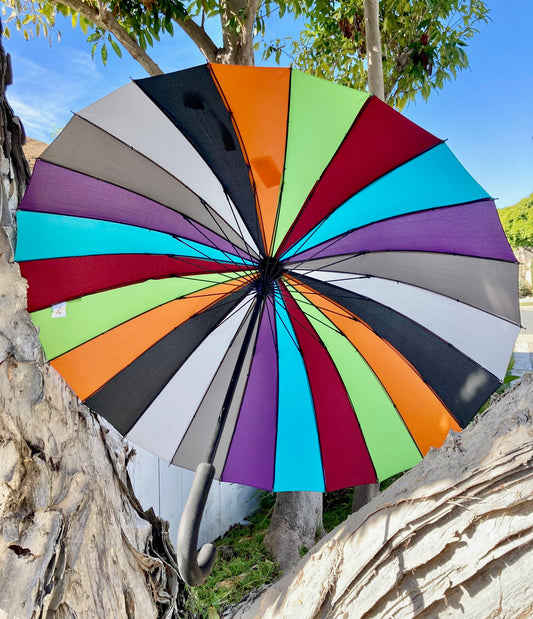Large 41" 24 Ribs Rainbow Stick Style Umbrella/Parasol | 8 Retro