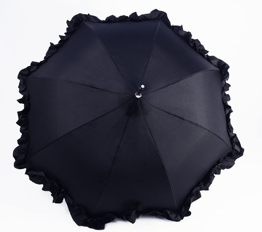 Pagoda con volantes negros | Estilo retro | Paraguas o sombrilla en forma de cúpula | Resistente al agua