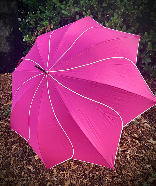 Paraguas rosa intenso con espirales para uso diario | Forma de pétalo | Ribete blanco