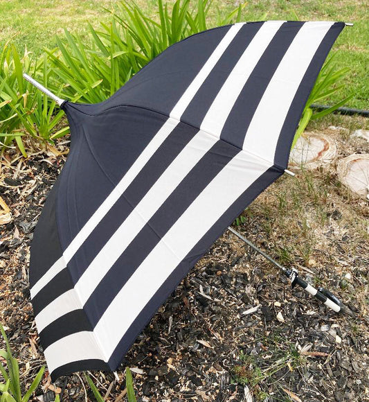 Paraguas Audrey | Forma de cúpula europea | Rayas negras y crema | Resistente al agua