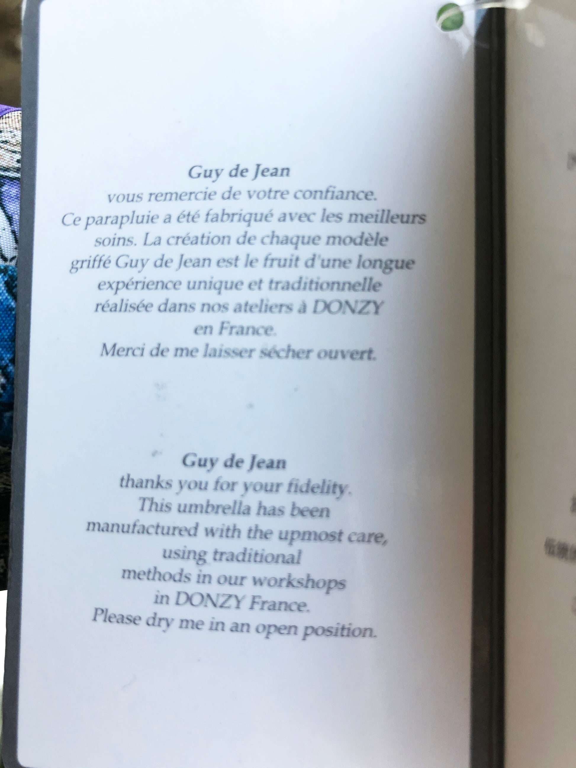 Ubicada en el corazón de Borgoña, esta empresa familiar diseña y fabrica paraguas y sombrillas desde 1920. En 2011, Guy de Jean recibió el Sello de Patrimonio Vivo del gobierno francés, una distinción única que reconoce la excelencia de sus habilidades.