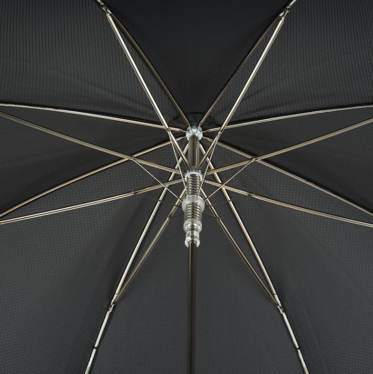 Este paraguas tiene sus propias reglas. Con un mango de 8 bolas y una cubierta negra texturizada, es ideal para los audaces, los afortunados y los que siempre encuentran su ángulo. Llévalo como si estuvieras planeando tu próximo golpe.