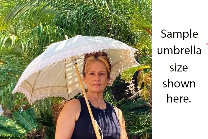 Tamaño: 78 cm de largo y 76 cm de diámetro. Nuestras sombrillas de tamaño regular miden aproximadamente 91 cm de largo y diámetro.