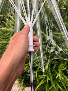 Nuestro paraguas transparente Trim-Free revoluciona los días de lluvia con un estilo y una practicidad inigualables. Al ser uno de los más grandes del mercado, ofrece aproximadamente 10 cm más de cobertura que los paraguas transparentes tradicionales. Su profunda cúpula de PVC proporciona una vista nítida, lo que garantiza que te mantengas seco sin sacrificar la visibilidad. Con espacio suficiente para dos personas, es el compañero perfecto para paseos bajo la lluvia y un excelente accesorio para eventos al aire libre.