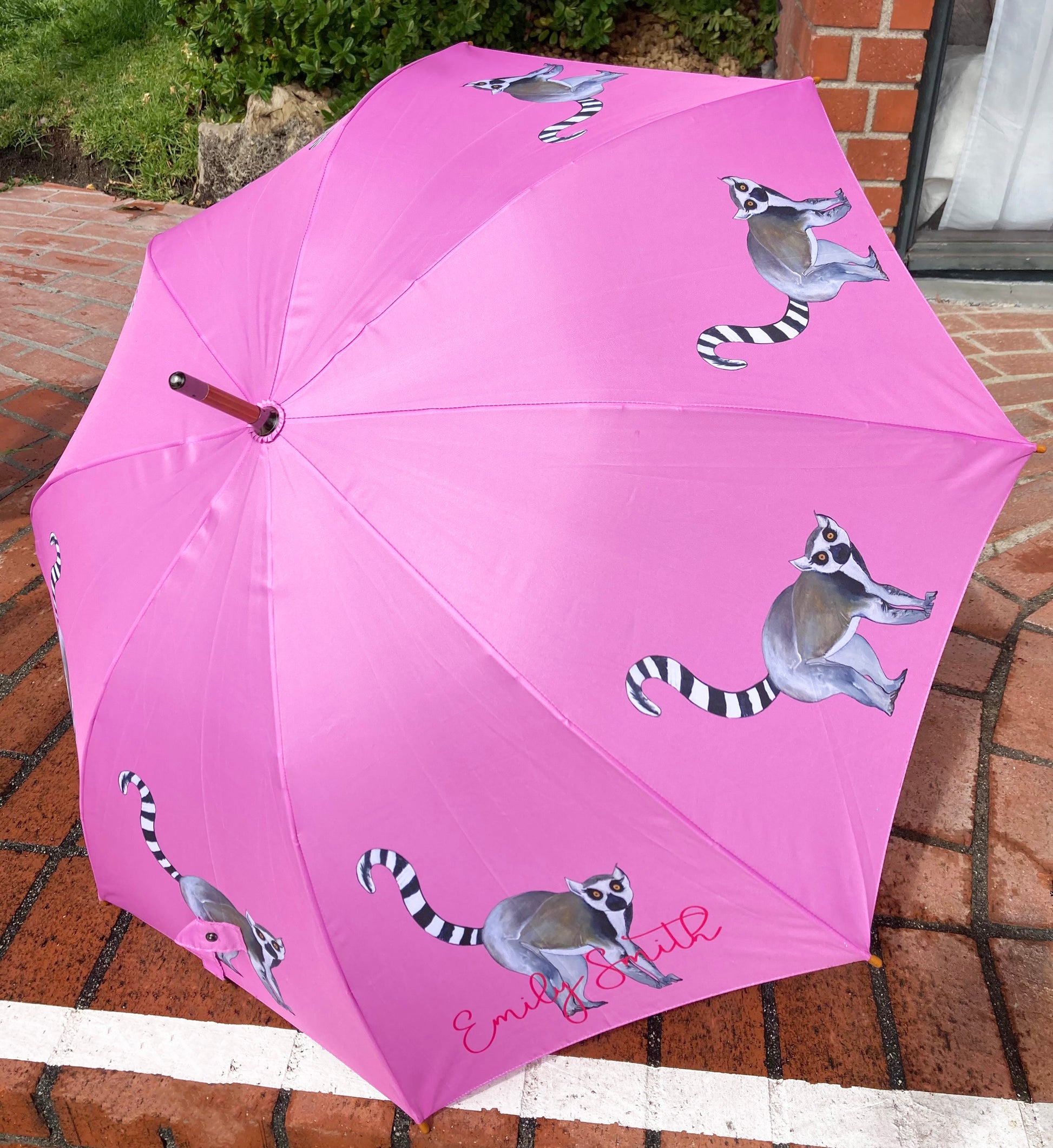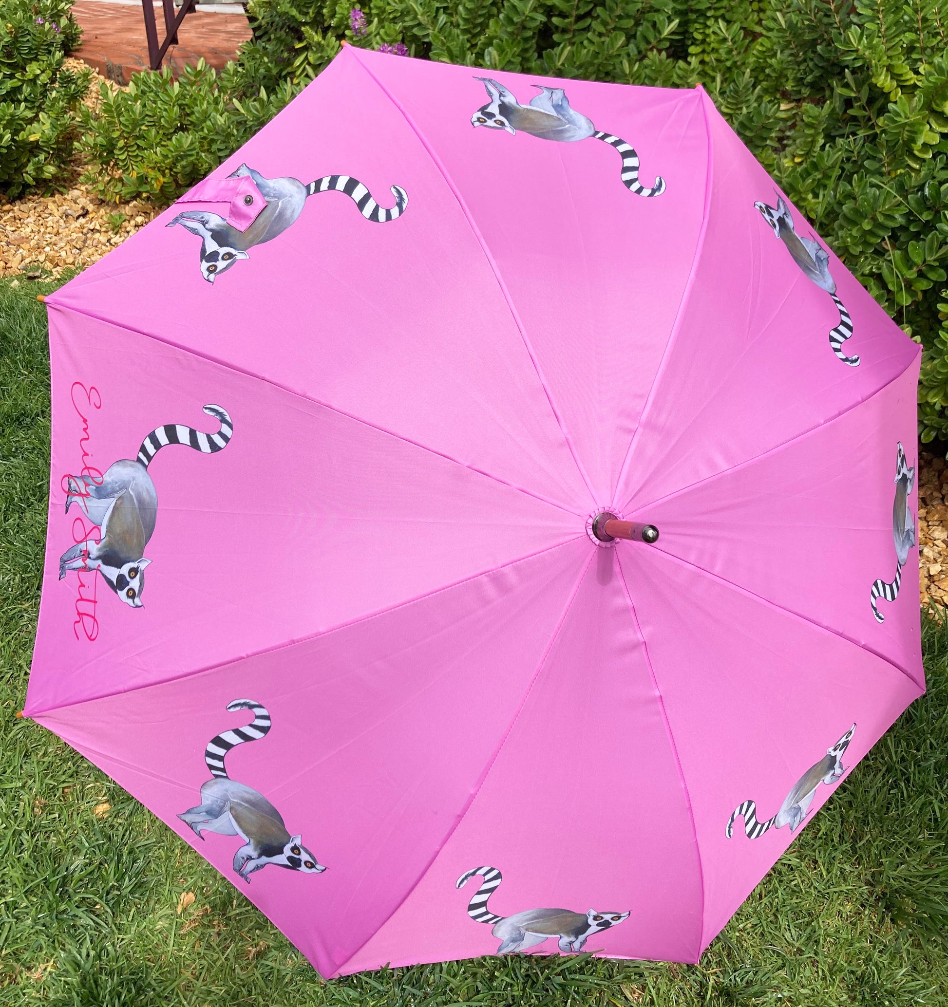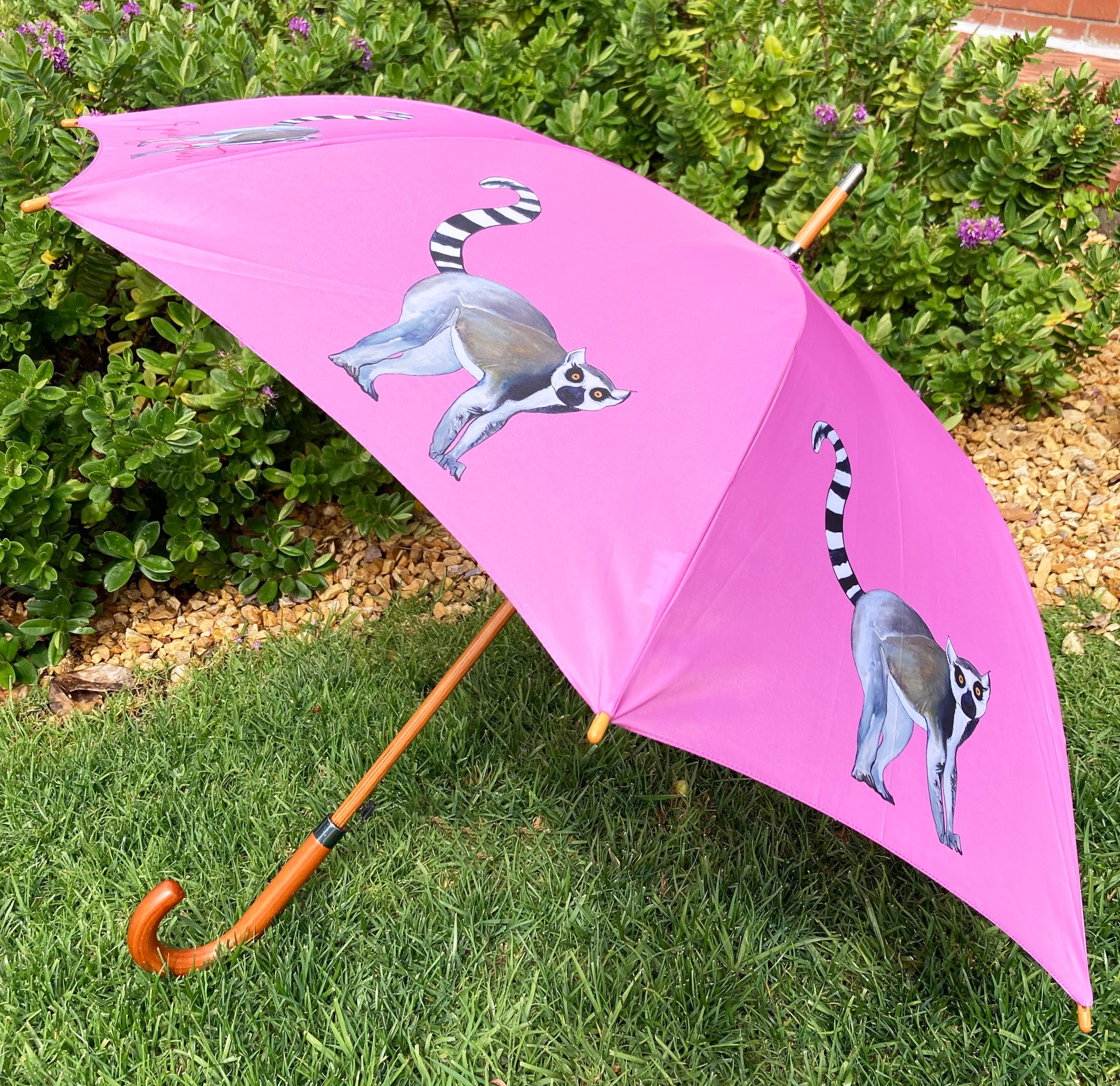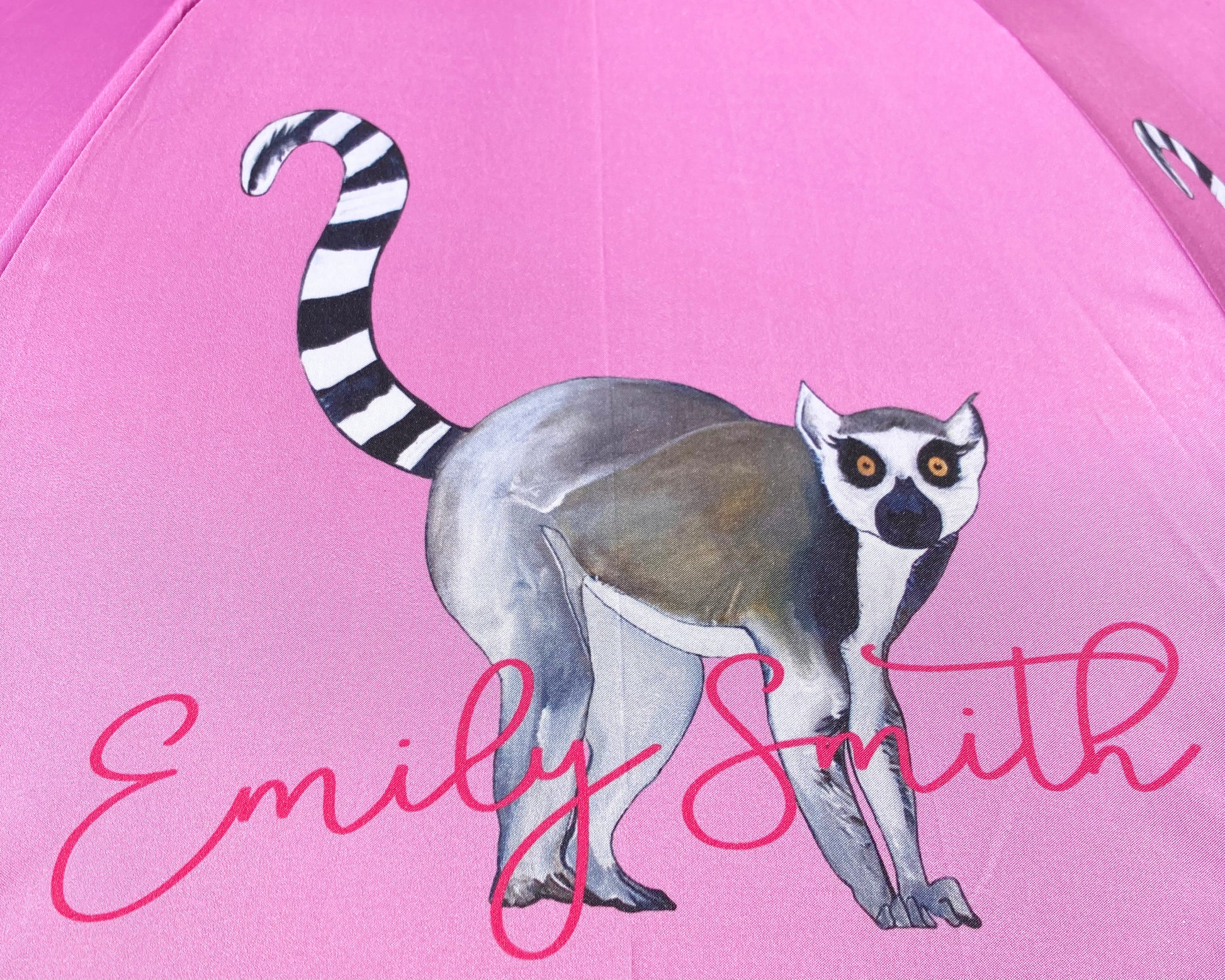 Paraguas rosa Livy The Lemur | Colección Emily Smith Reino Unido |