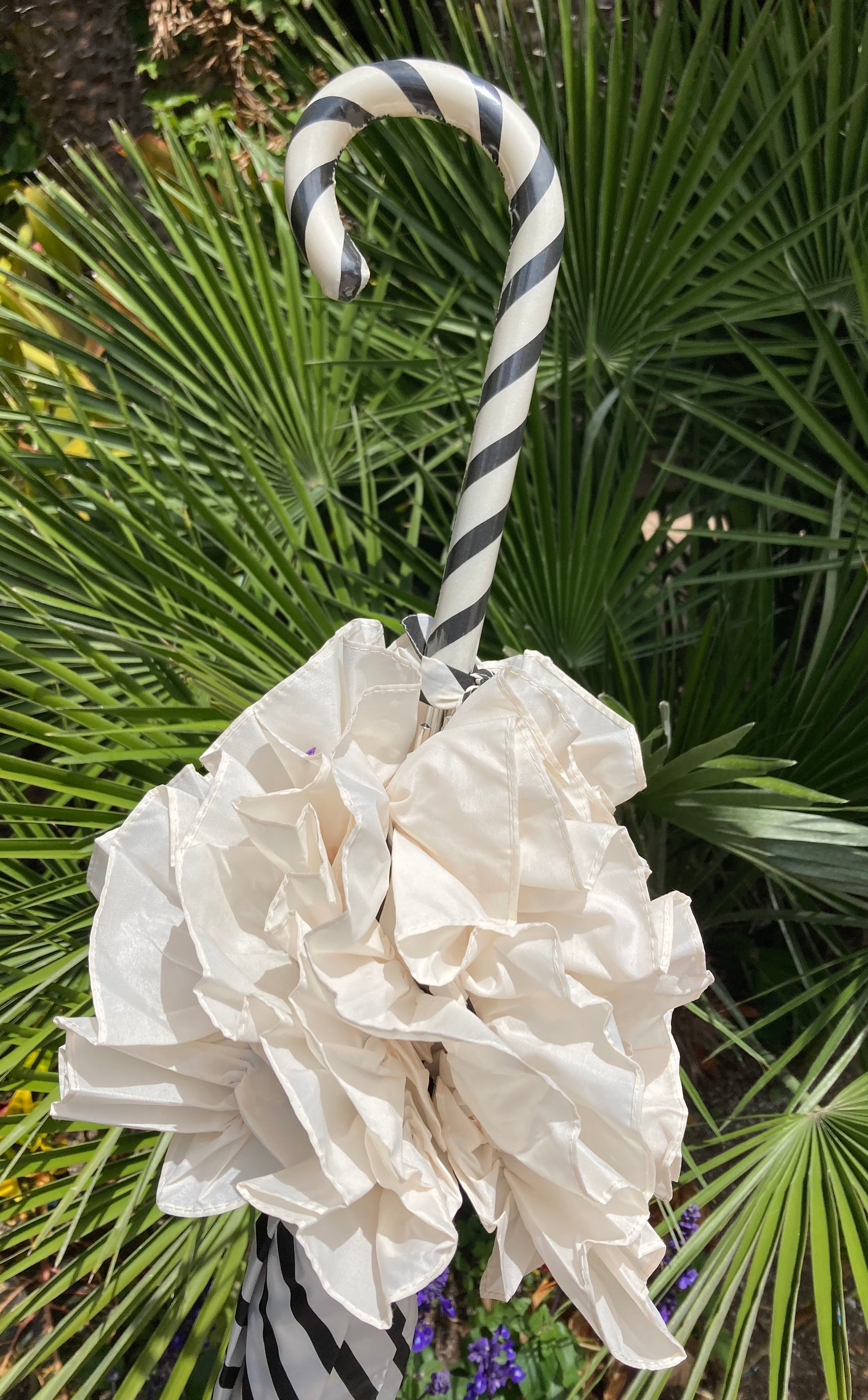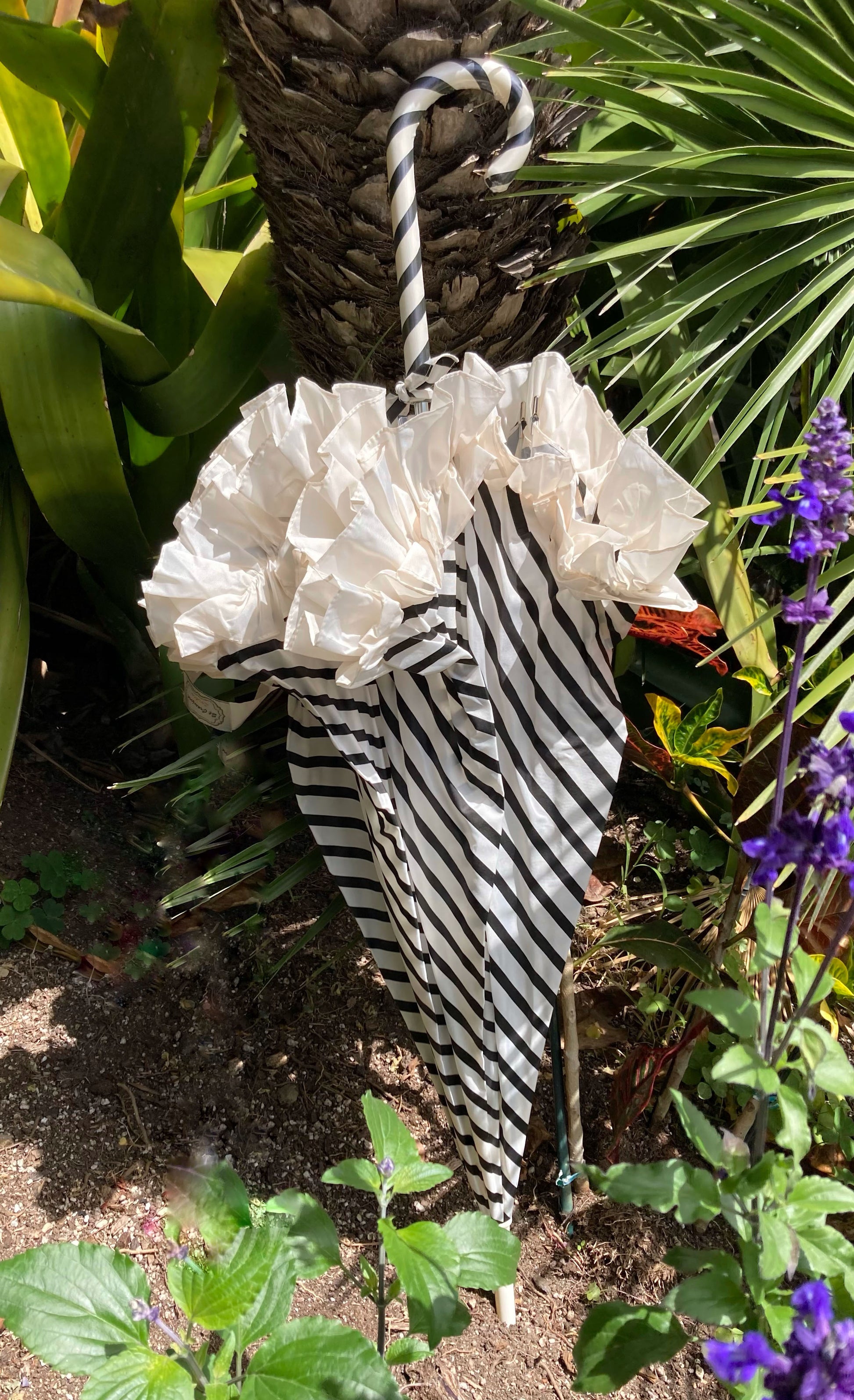 Elegante, alegre e irresistible: este paraguas de rayas diagonales en blanco y negro es una declaración de elegancia natural. Diseñado para quienes aprecian el estilo clásico con un toque de fantasía, su suave ribete de volantes le aporta un encanto romántico de inspiración vintage. Con su inconfundible elegancia parisina, este paraguas encarna la gracia de una época pasada sin renunciar a la modernidad.