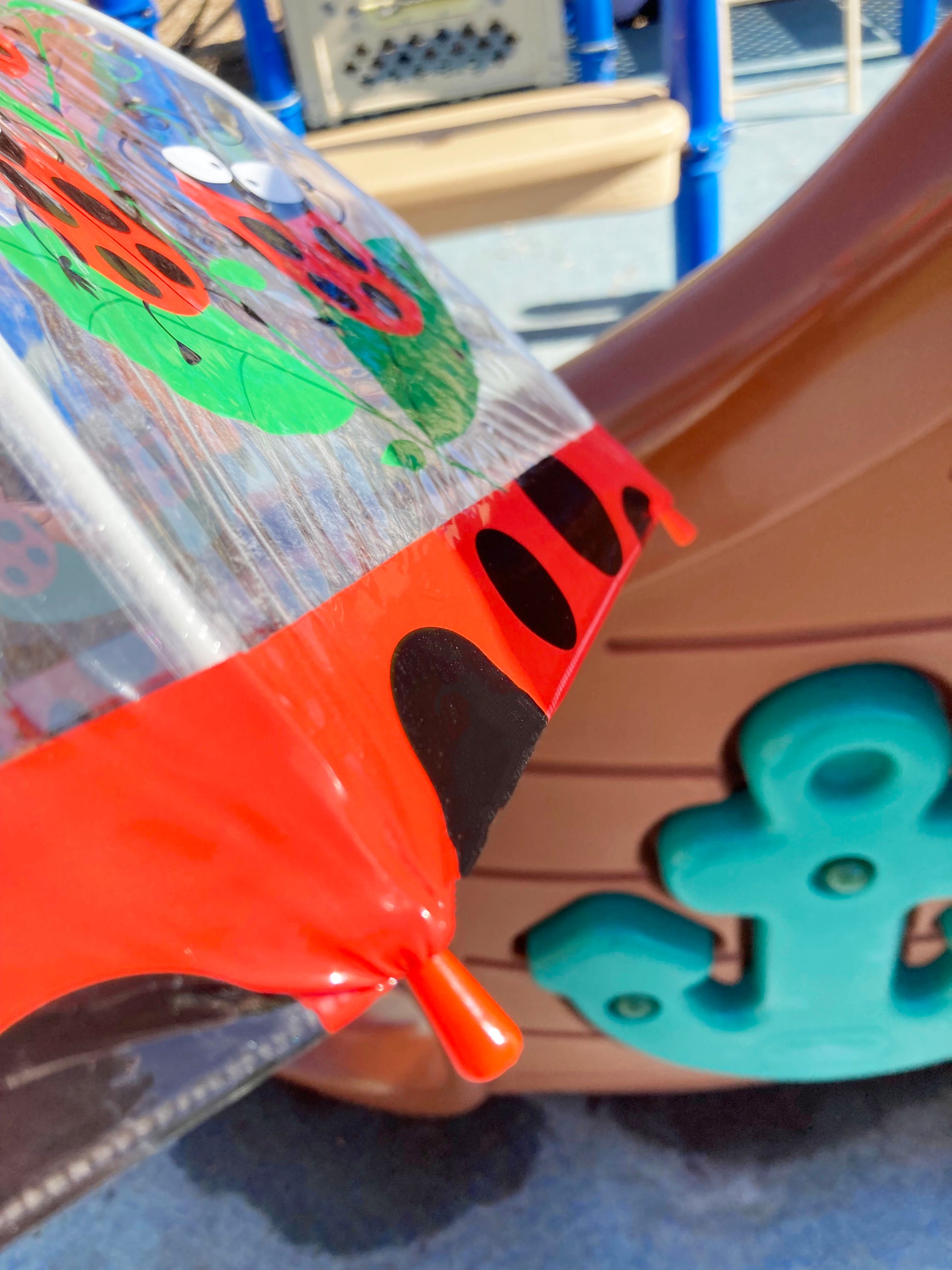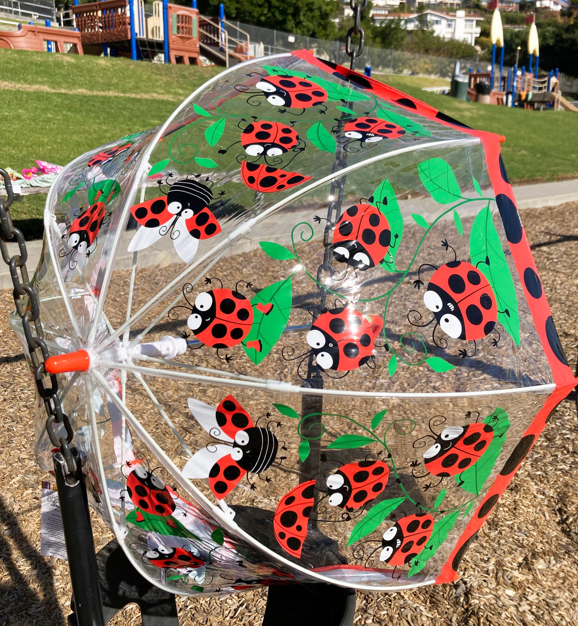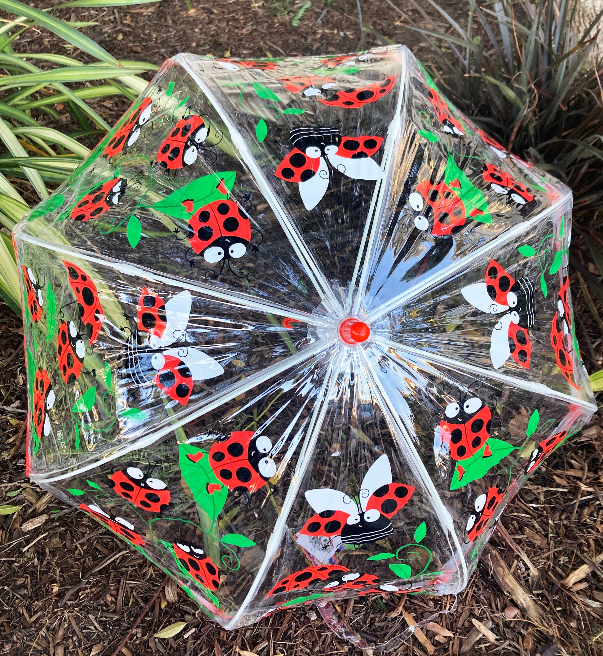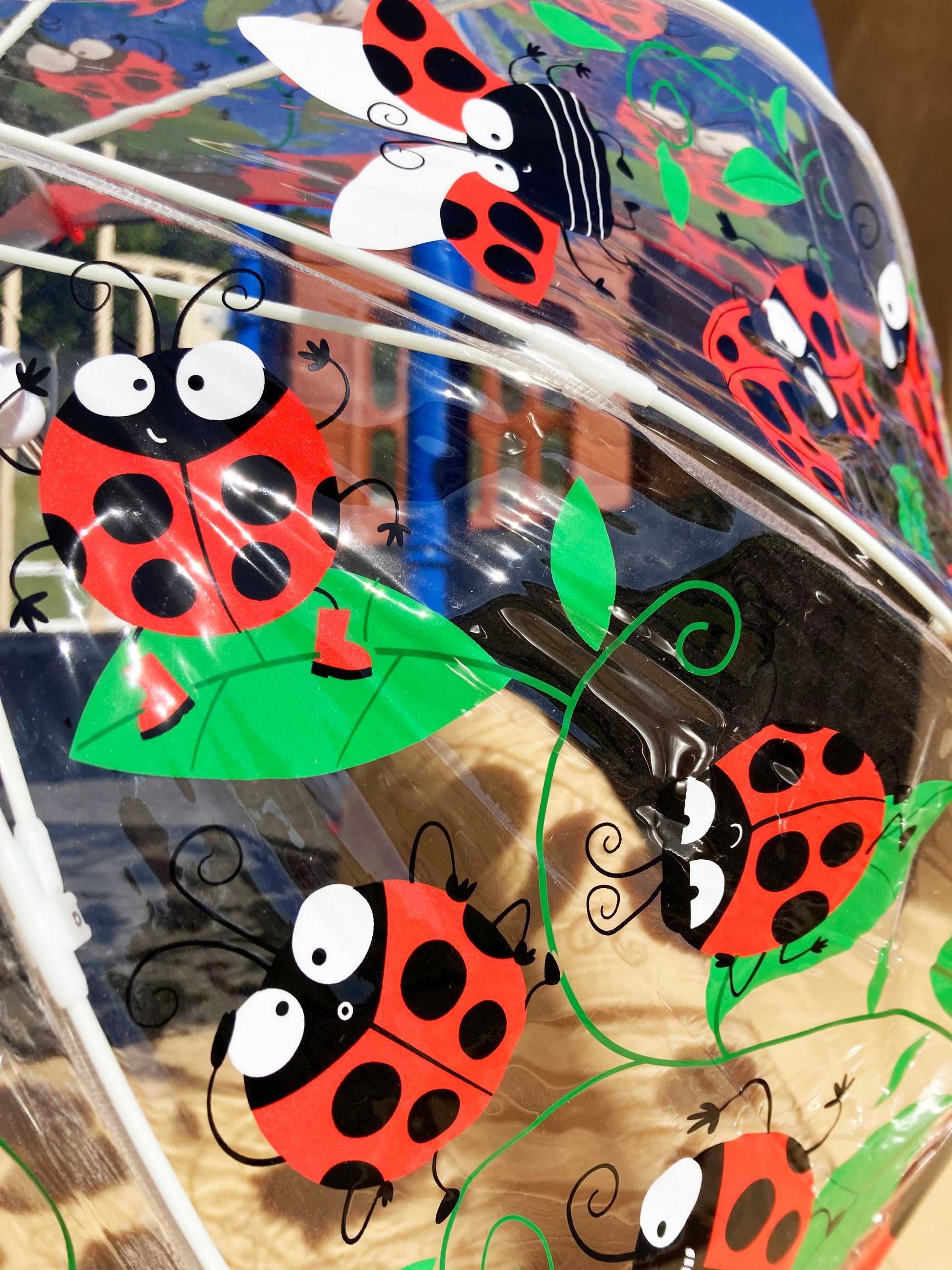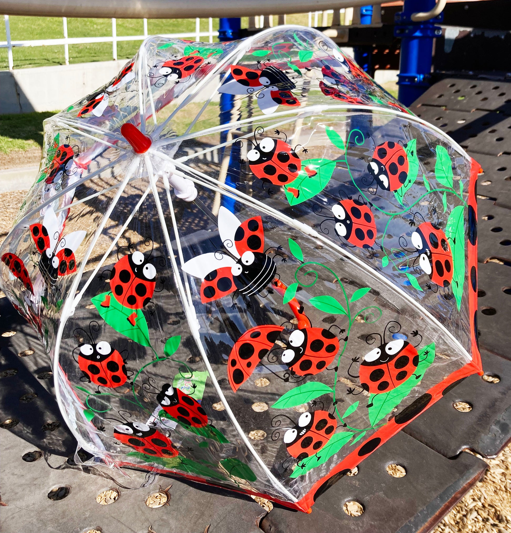 Paraguas infantil transparente con forma de mariquita de Bugzz® | Varillas flexibles y puntas seguras | Sistema de fácil apertura y cierre