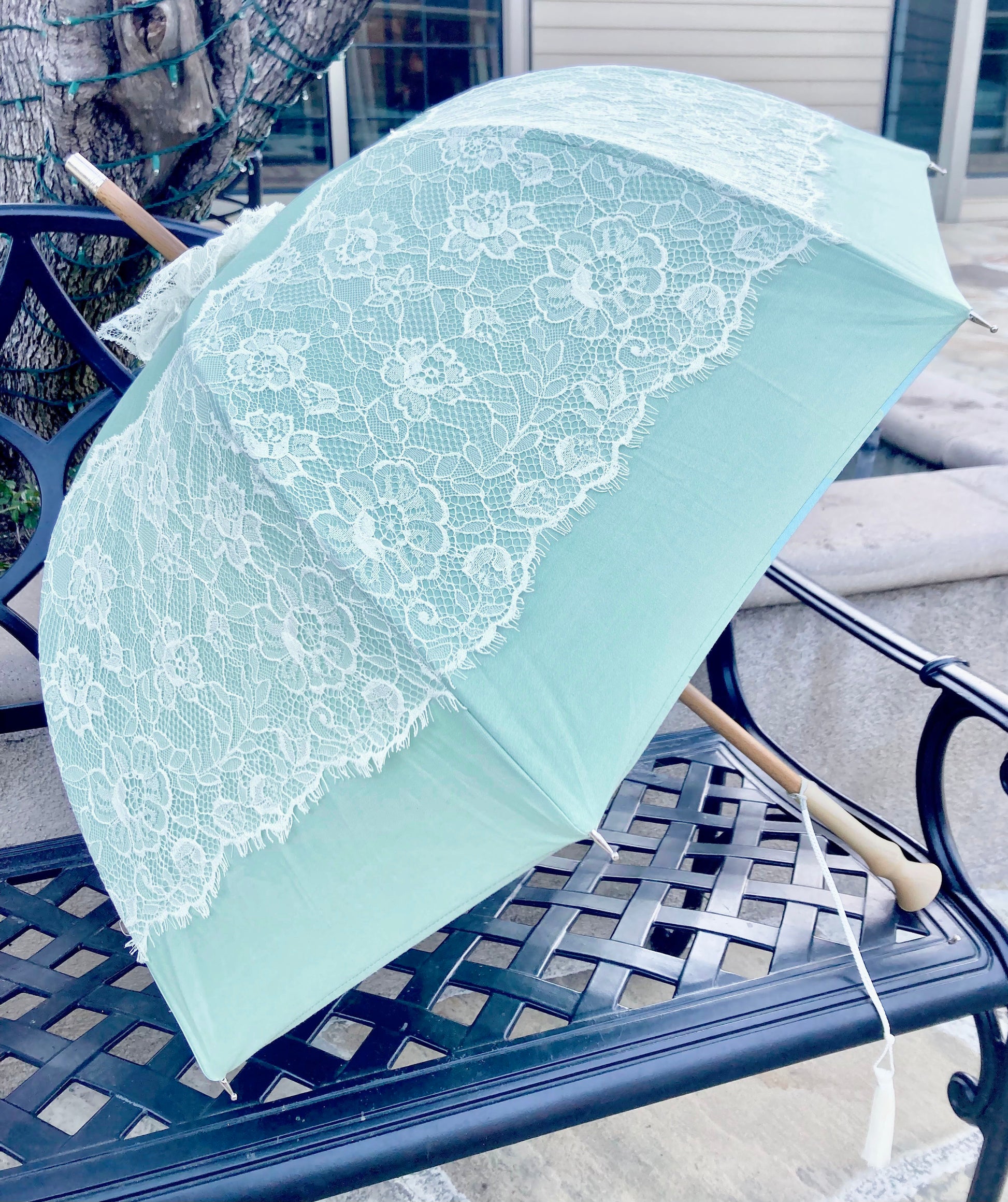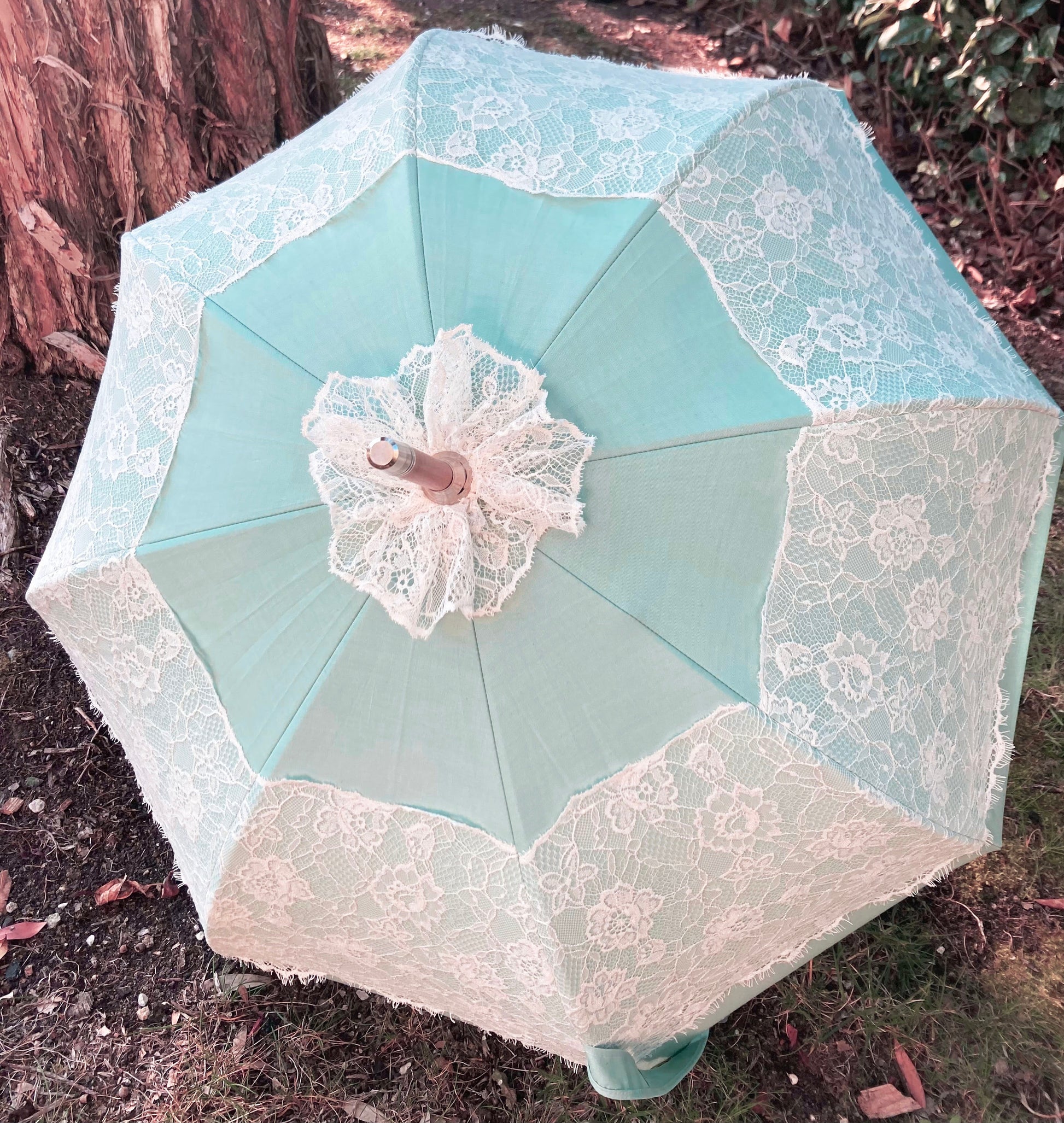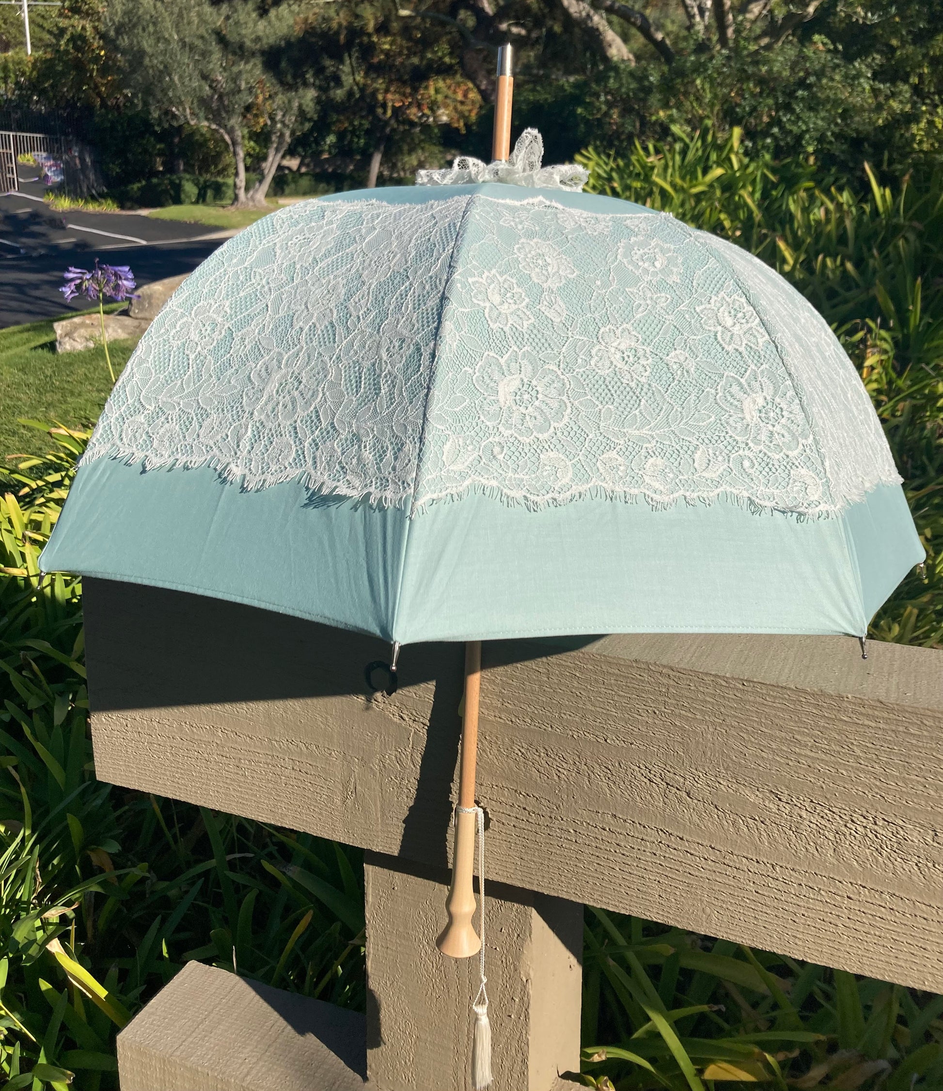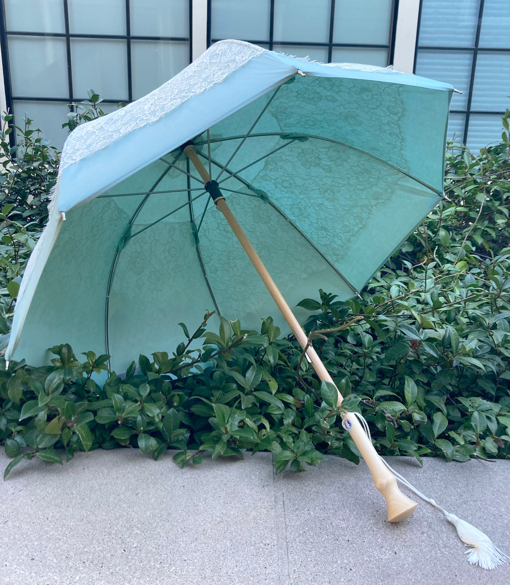 Paraguas Sissi anti-UV color menta | Retro, impermeable, hecho a mano en Francia | Envío gratis