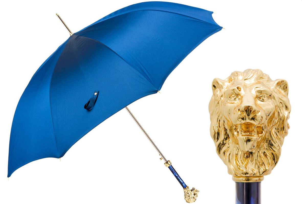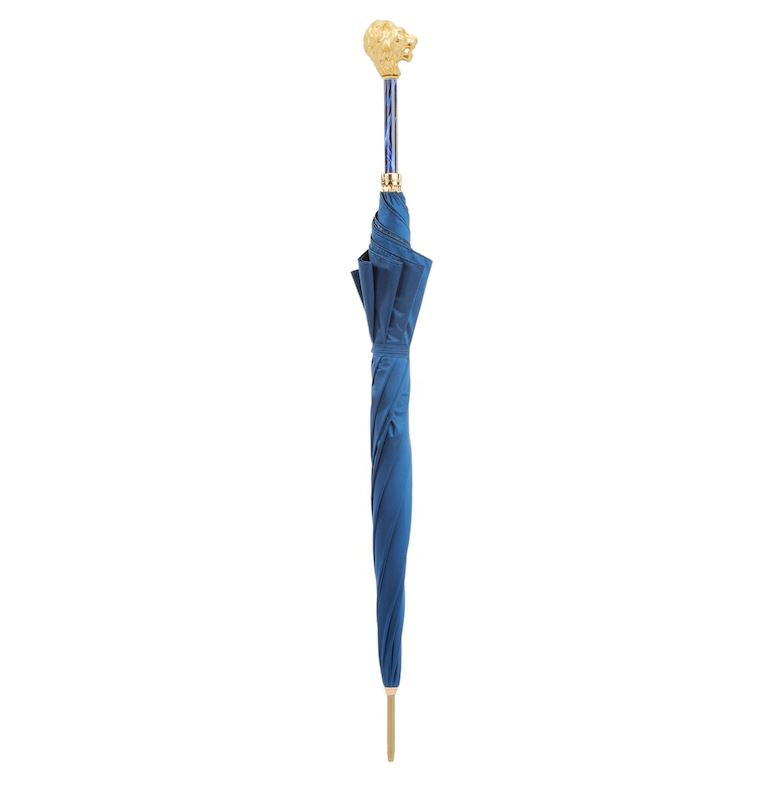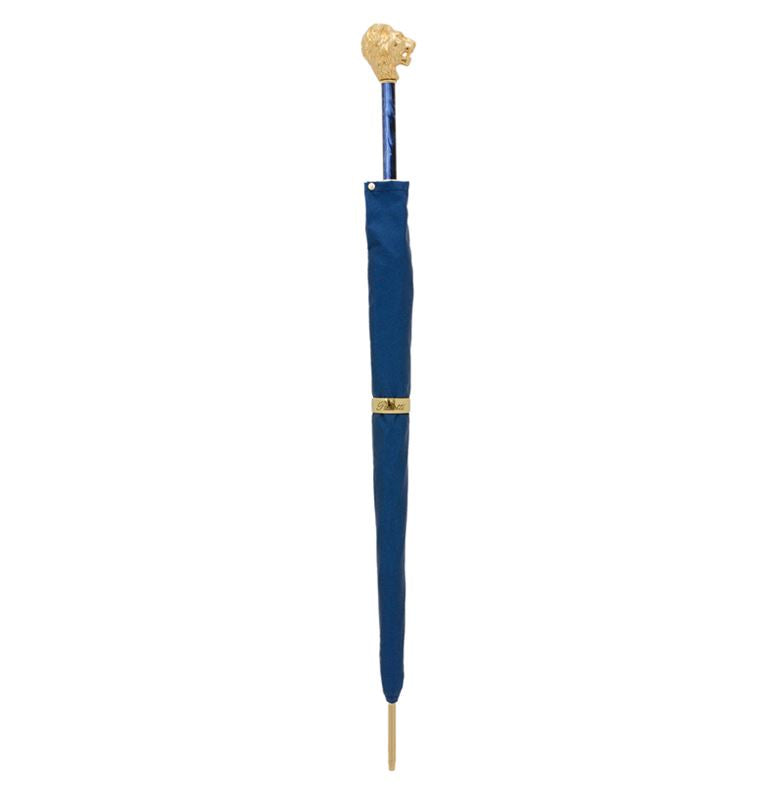 Blue Umbrella with Gold Lion Handle | Pasotti Italian Collection | Free Shipping