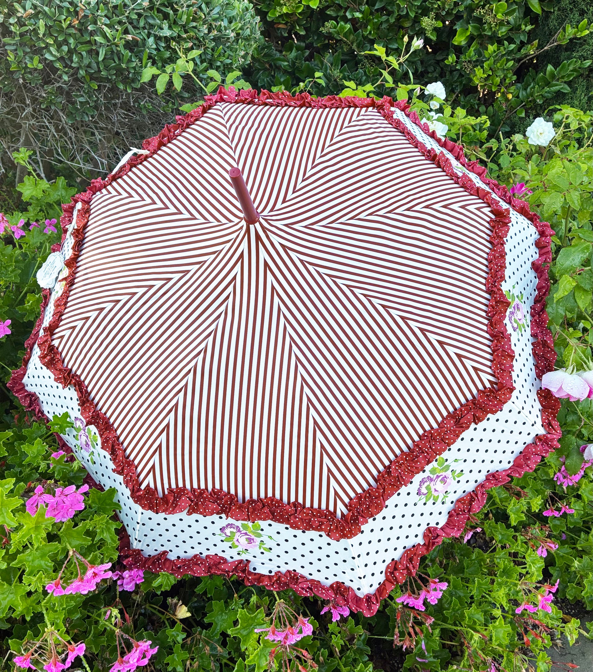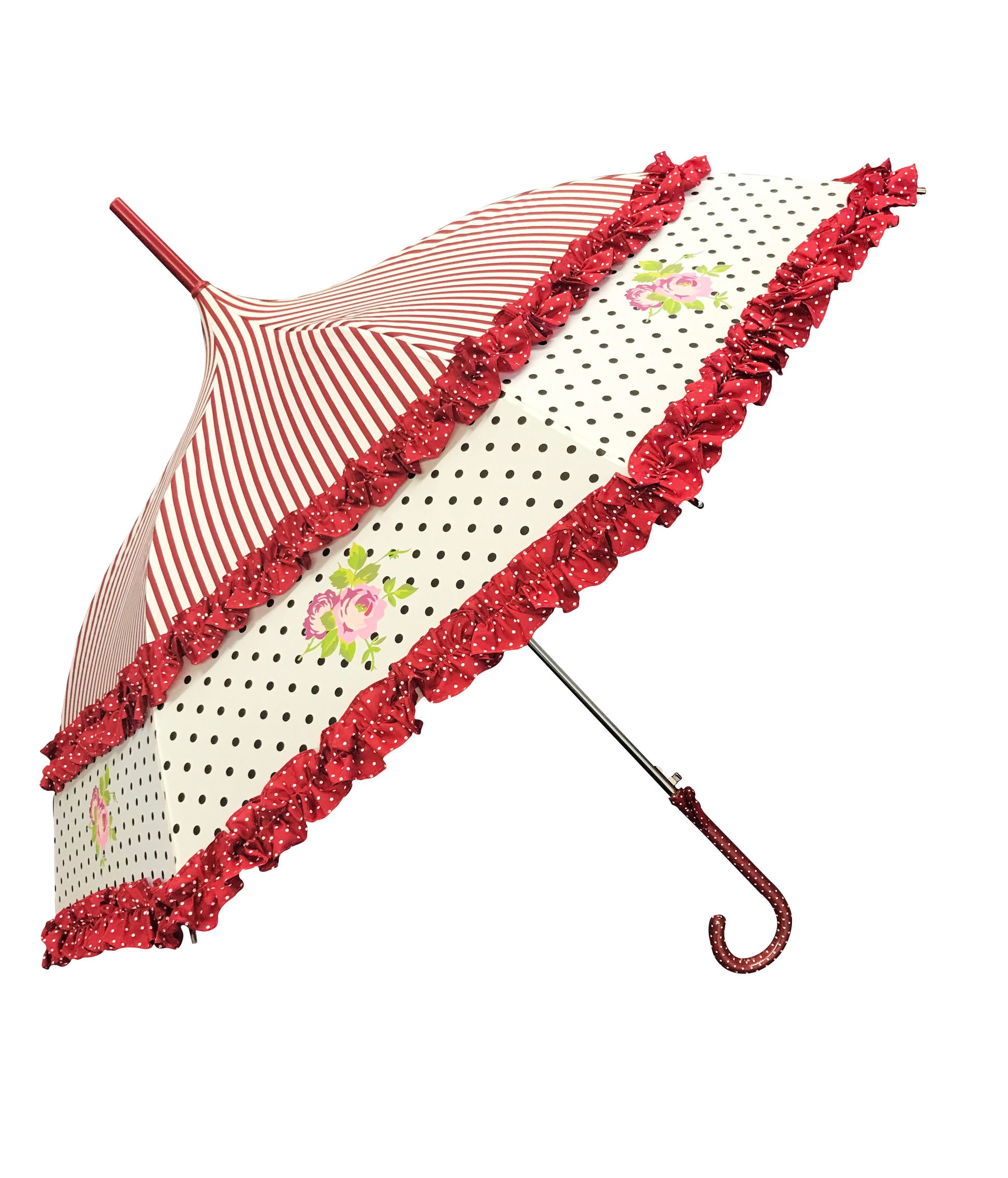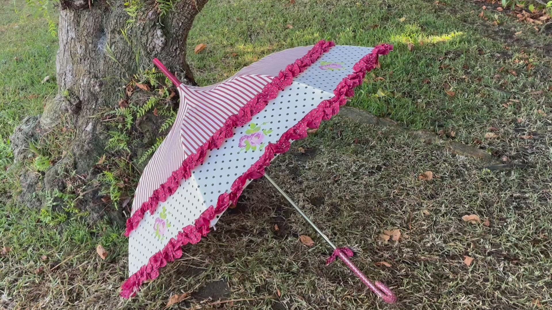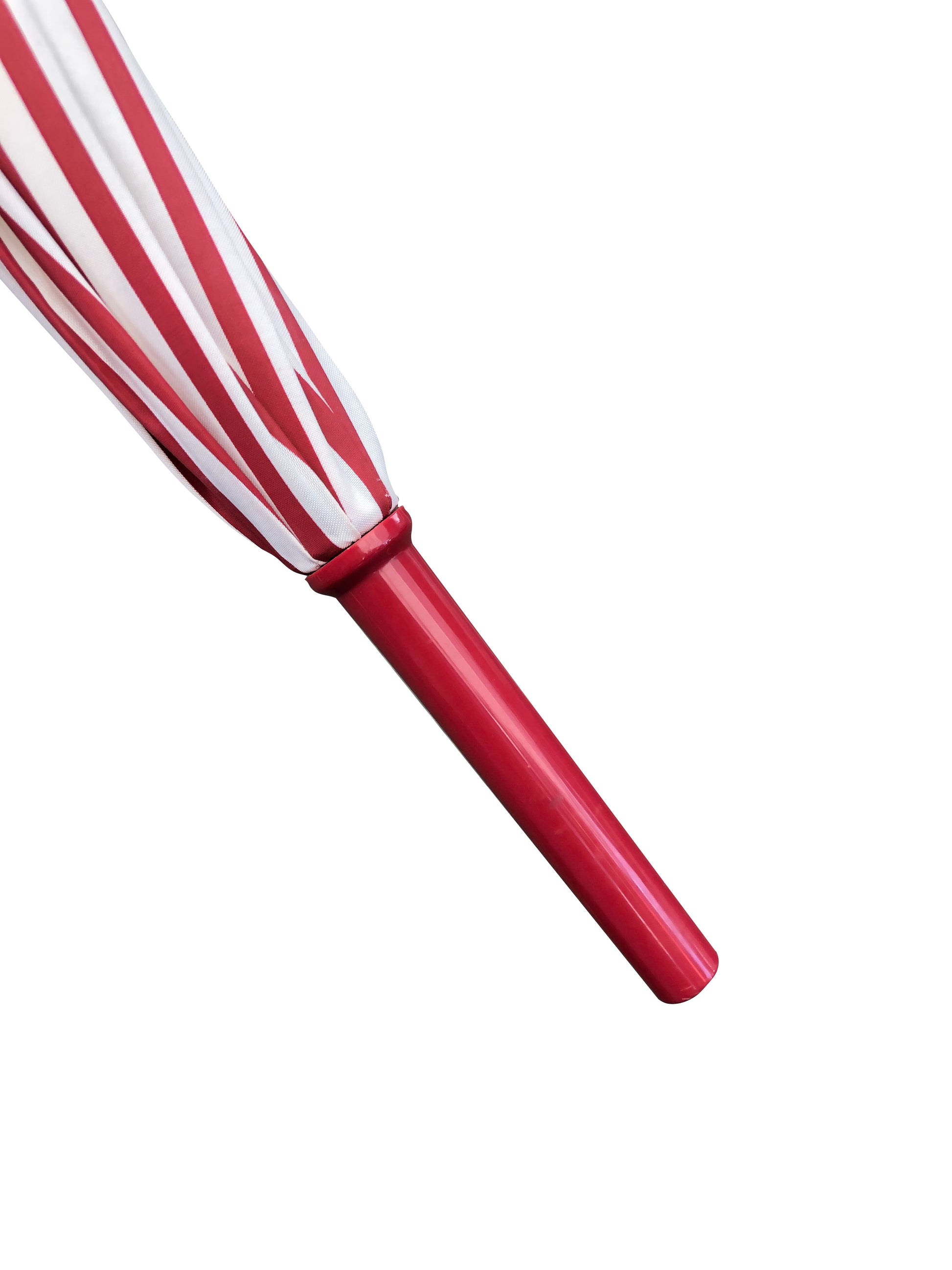 This umbrella is for anyone who sees rainy days as an opportunity to stand out. The bold red stripes, playful polka dots, and vibrant floral accents reflect a personality that loves to mix charm with individuality. The frilled edges add a touch of nostalgia, making it ideal for someone who values timeless elegance with a whimsical twist. Whether it’s a stroll through the city or a garden party in the drizzle, this umbrella invites you to turn heads and bring a little joy to every step you take.