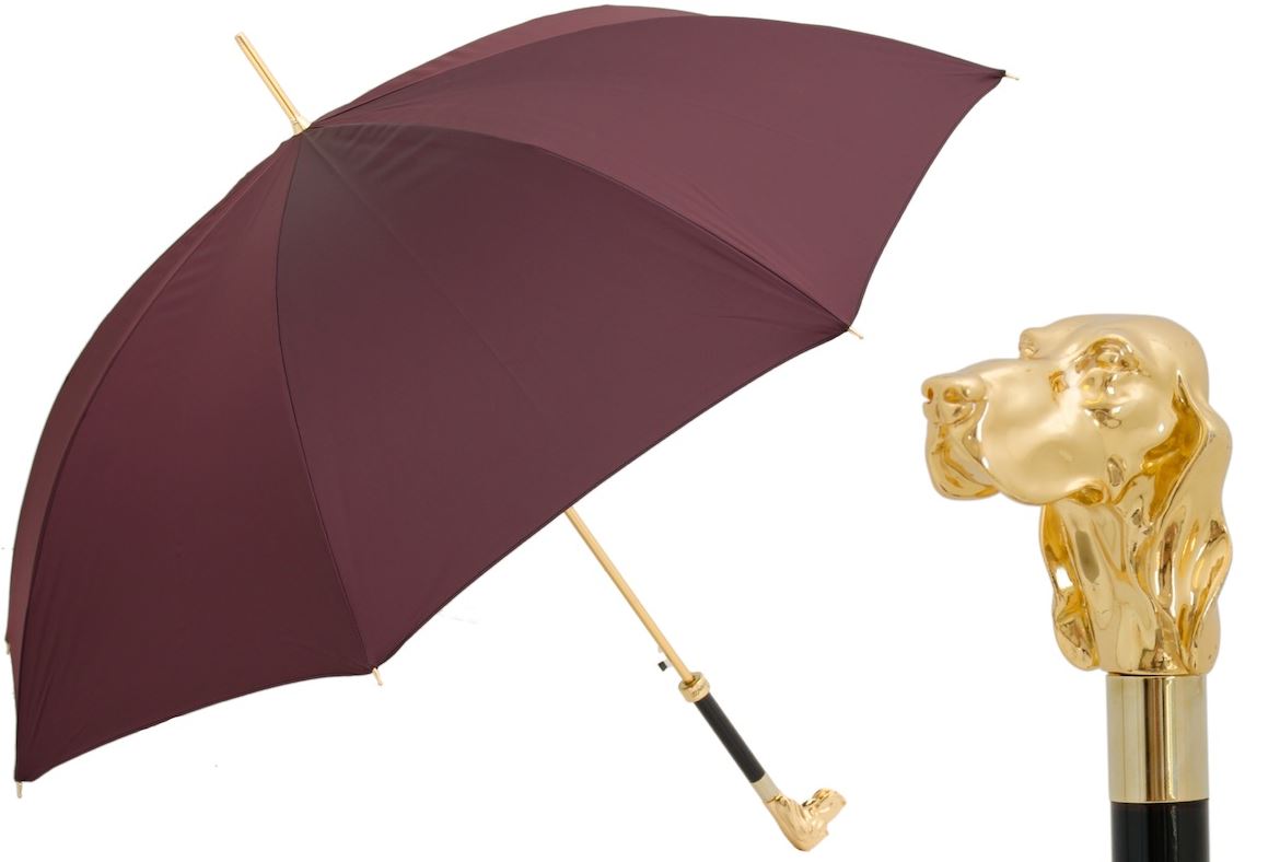 Burgundy Umbrella With Golden Dog by Pasotti | Automatic Opening | Free Shipping