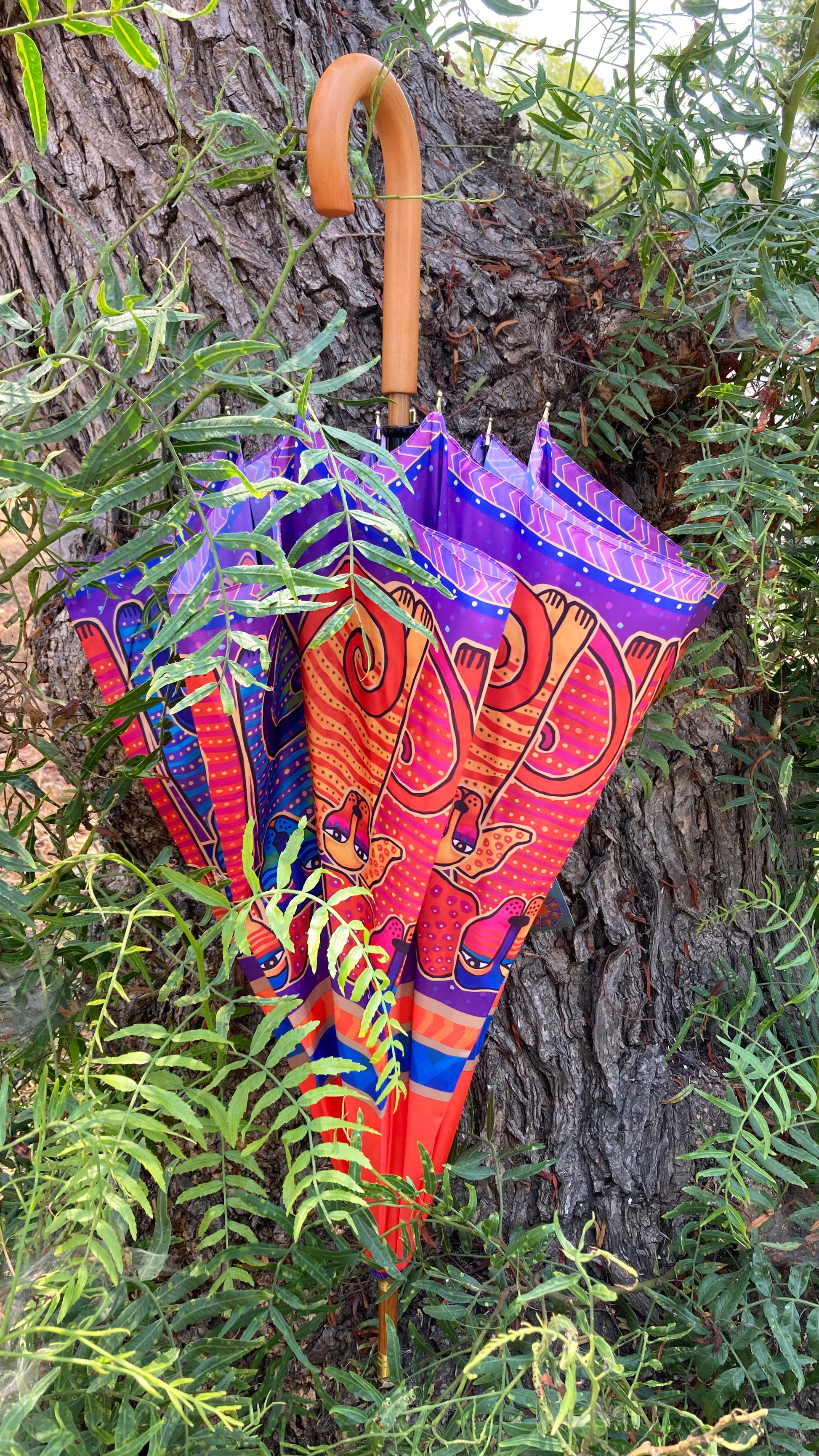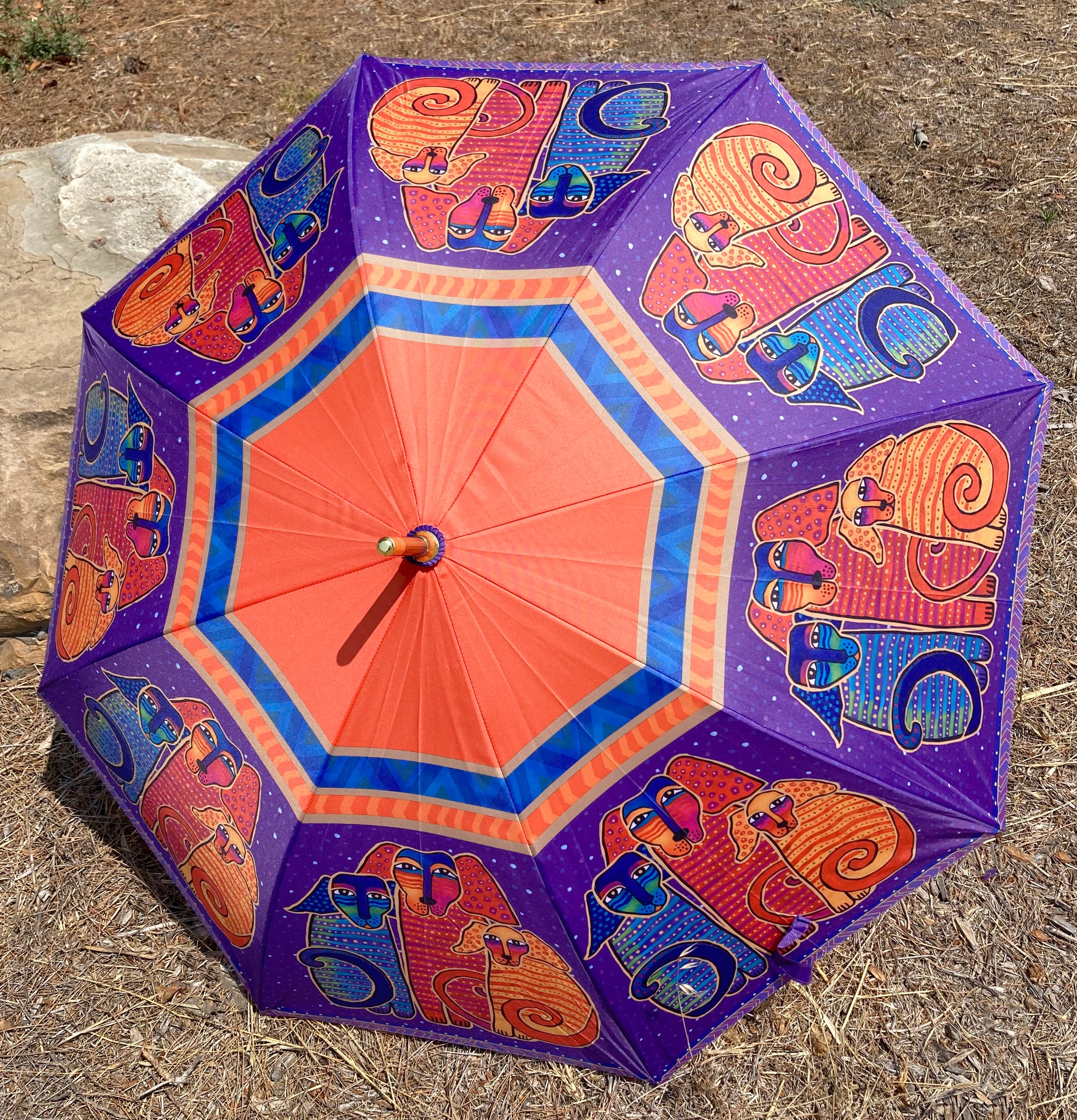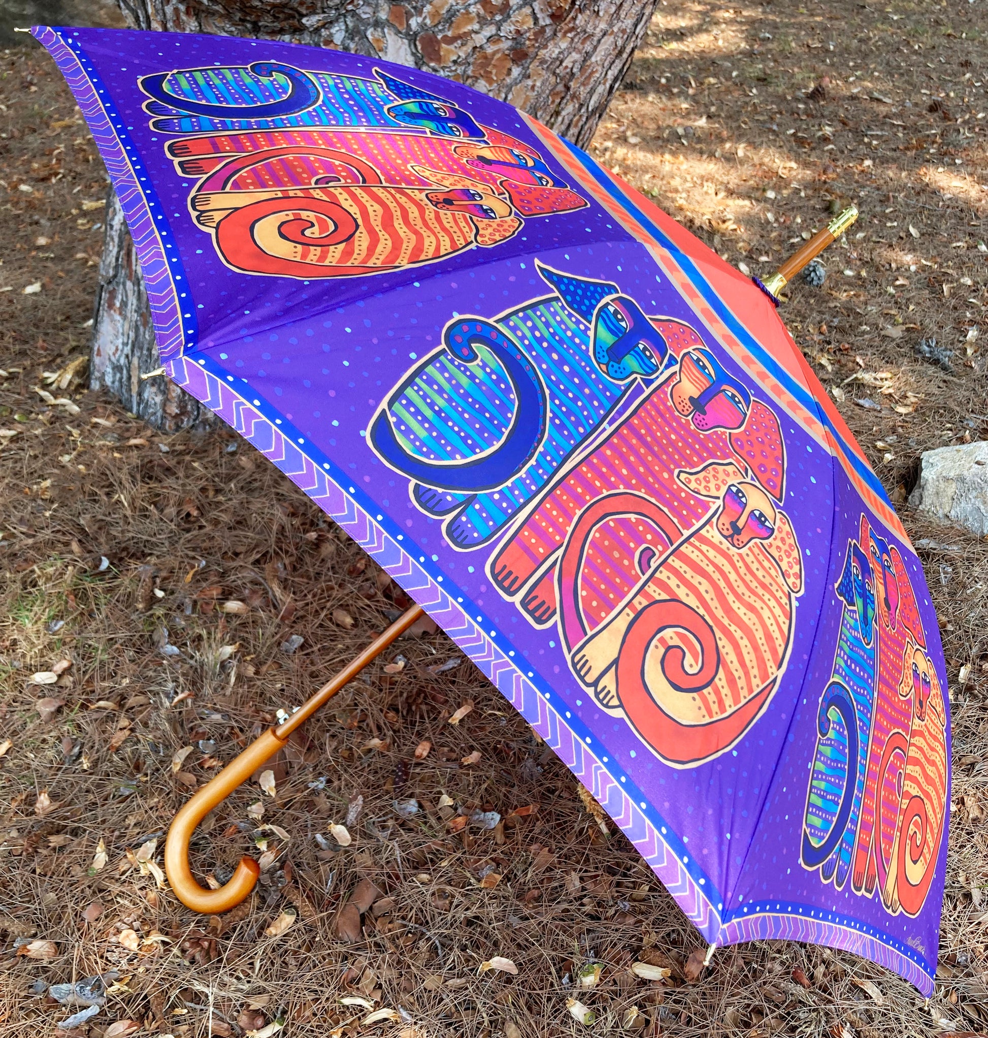 Laurel Burch umbrellas blend vivid color with whimsical art, turning everyday rain gear into joyful, wearable stories. From playful cats to celestial designs, each piece reflects her bold, creative spirit.