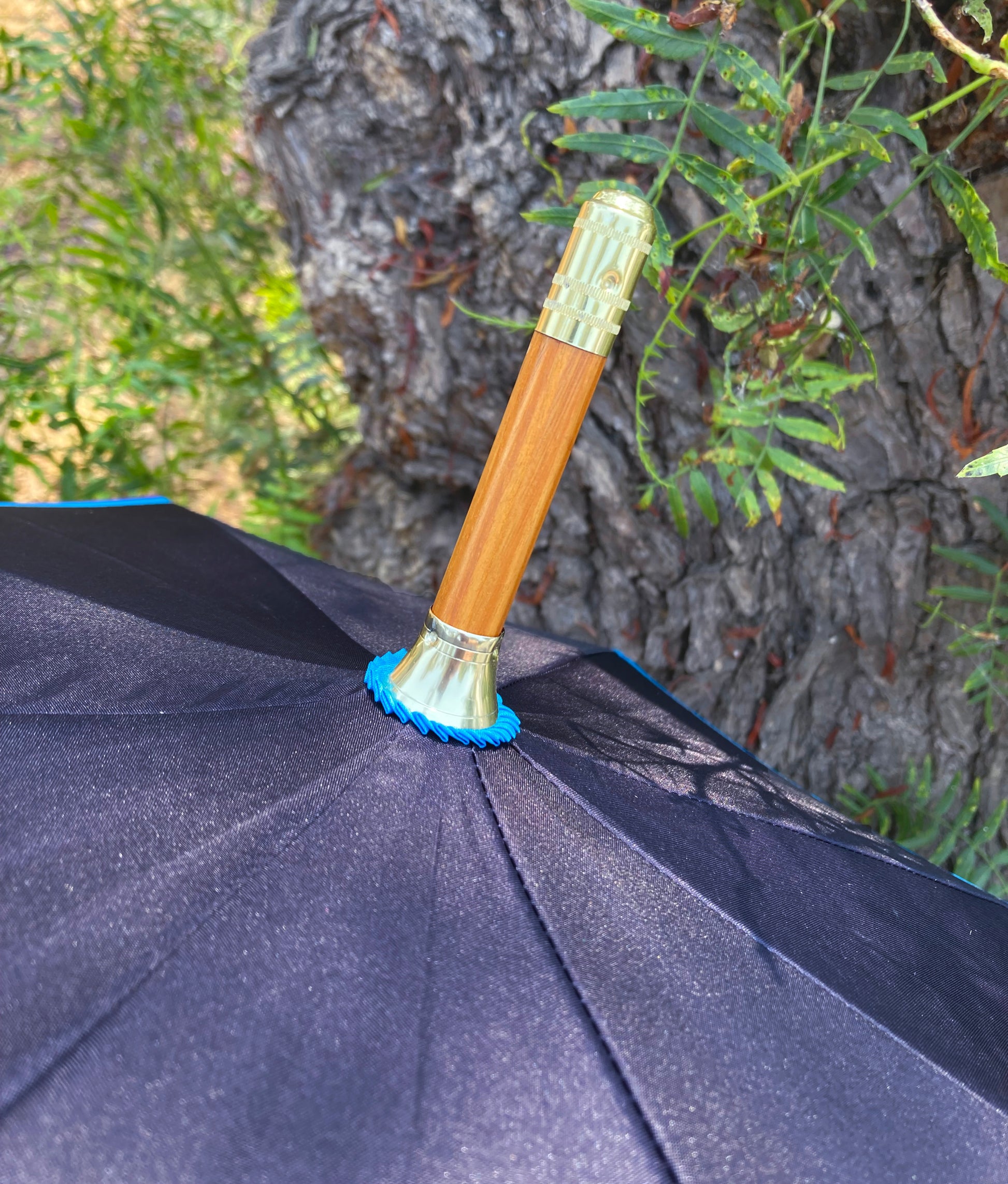 This umbrella is a full-blown festival of feline flair. Set against a golden trim and galaxy-black background, Carlotta’s dreamy cats peek out from a jungle of psychedelic blooms and swirling patterns. Bursting with color and mystery, it’s the kind of umbrella that turns a sidewalk into a runway.