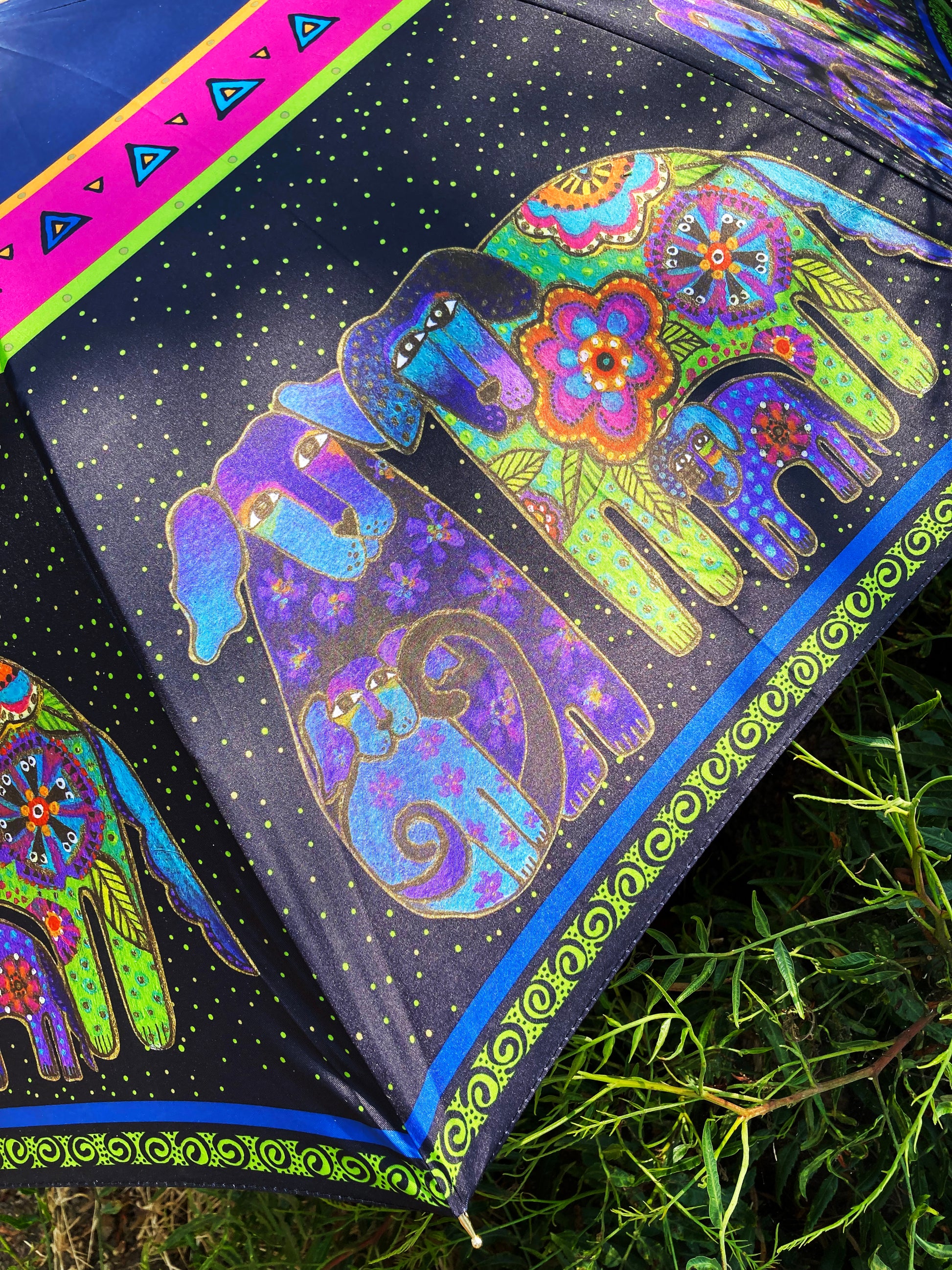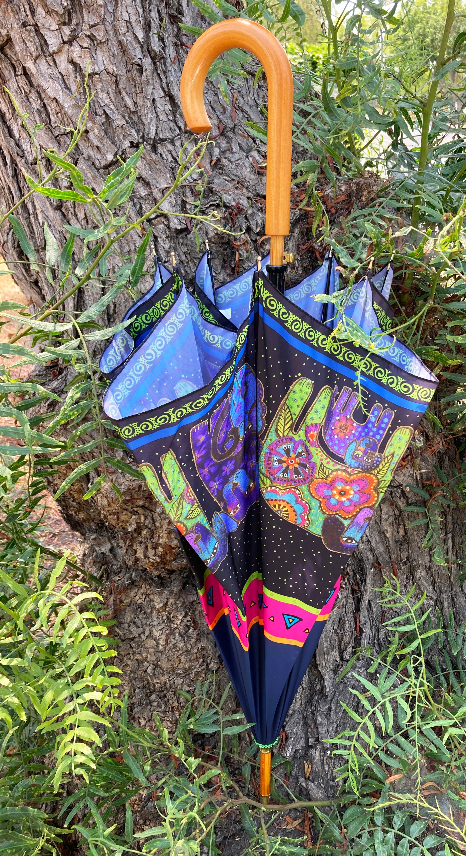 Laurel Burch umbrellas blend vivid color with whimsical art, turning everyday rain gear into joyful, wearable stories. From playful cats to celestial designs, each piece reflects her bold, creative spirit.