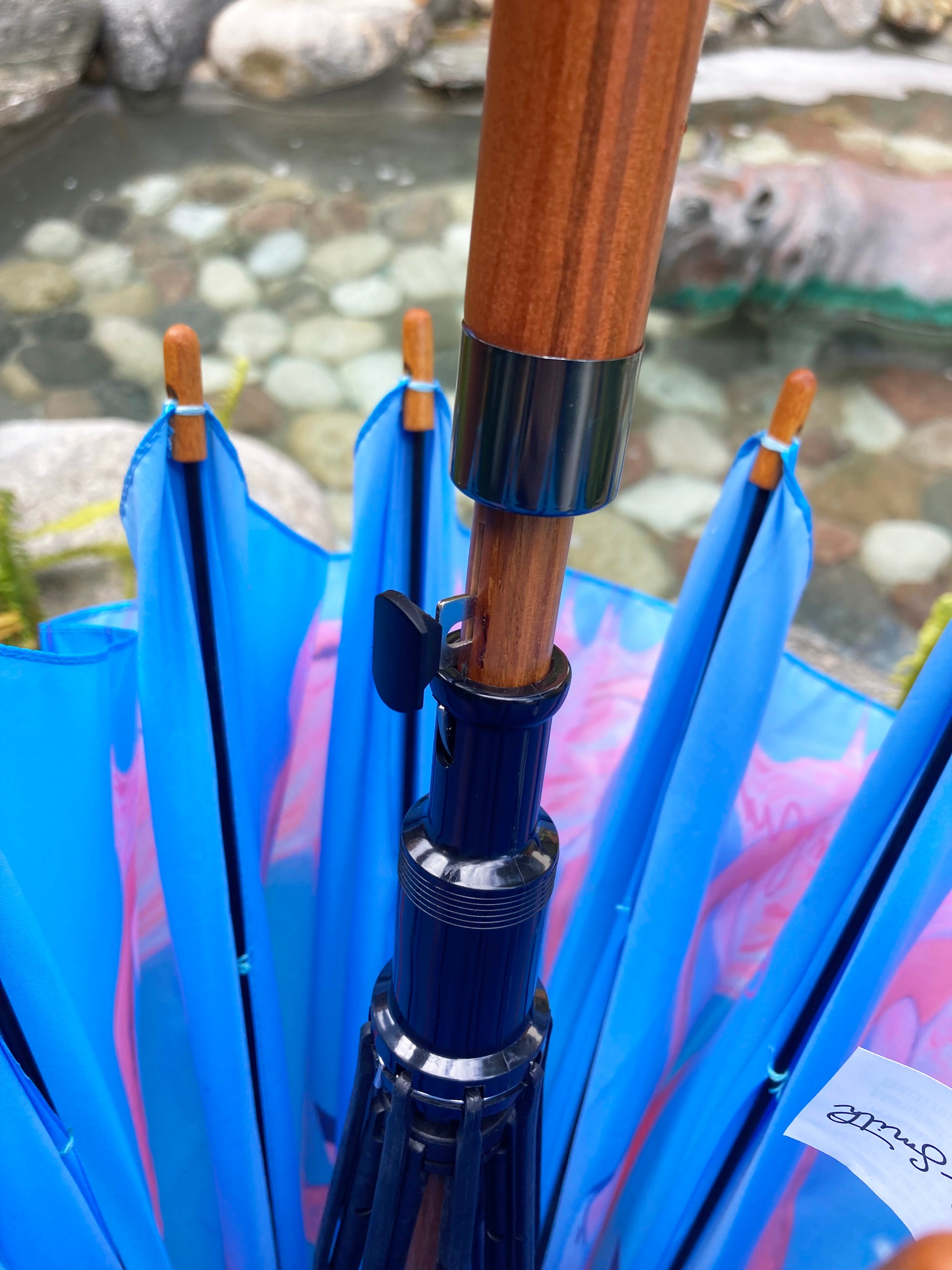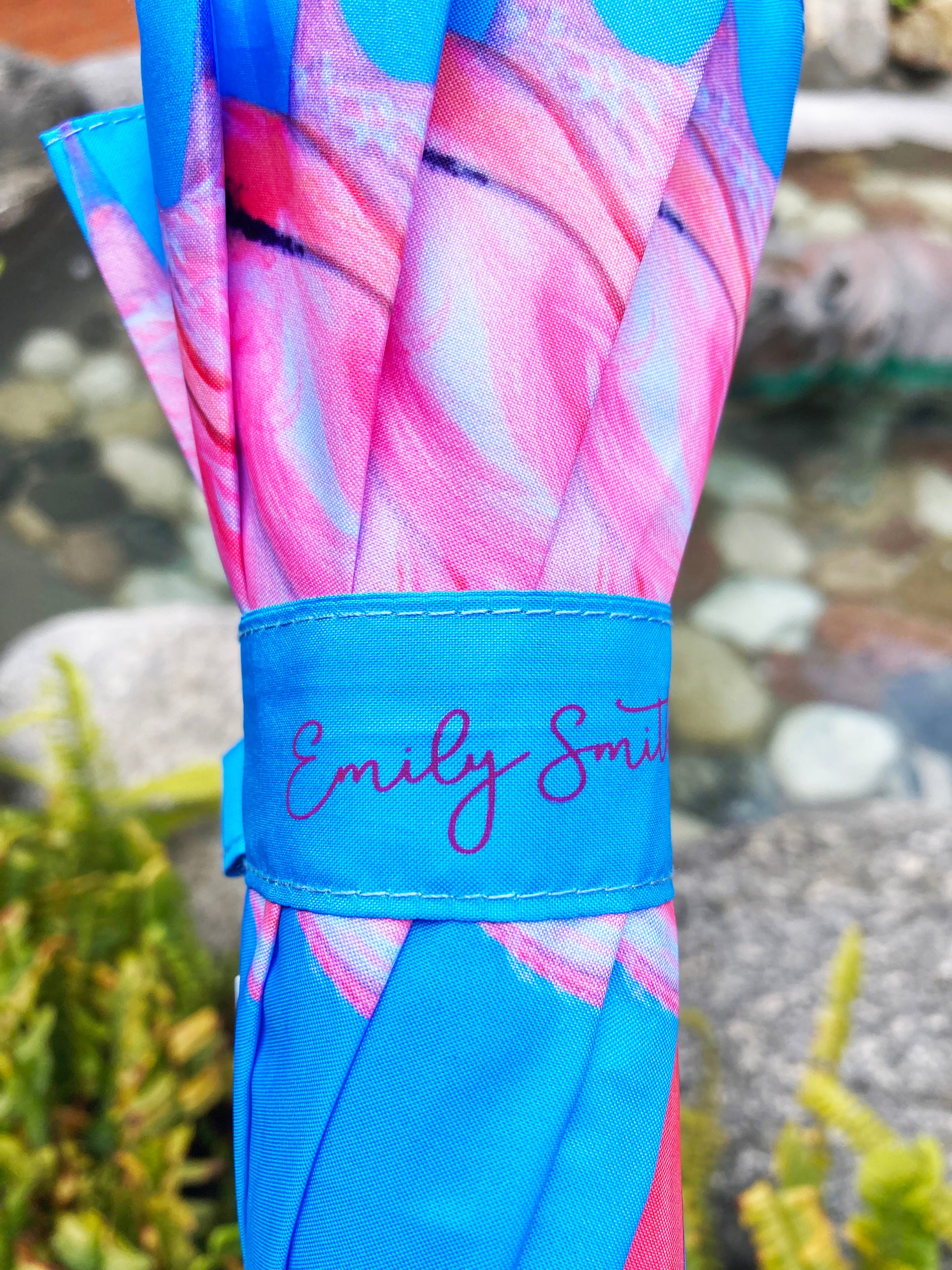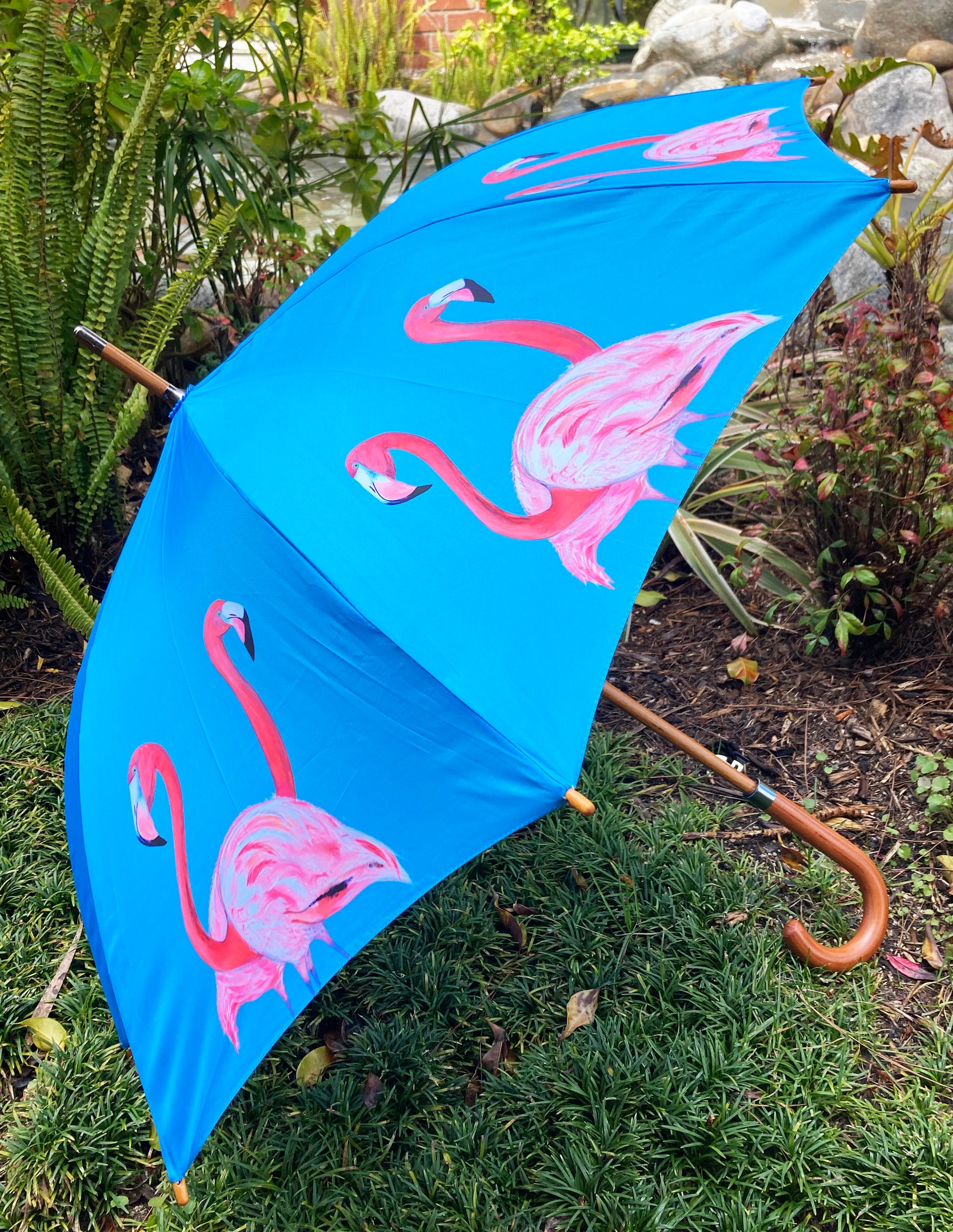 Flamingo Umbrella by Emily Smith England | Flossy and Amber Blue and Pink Design