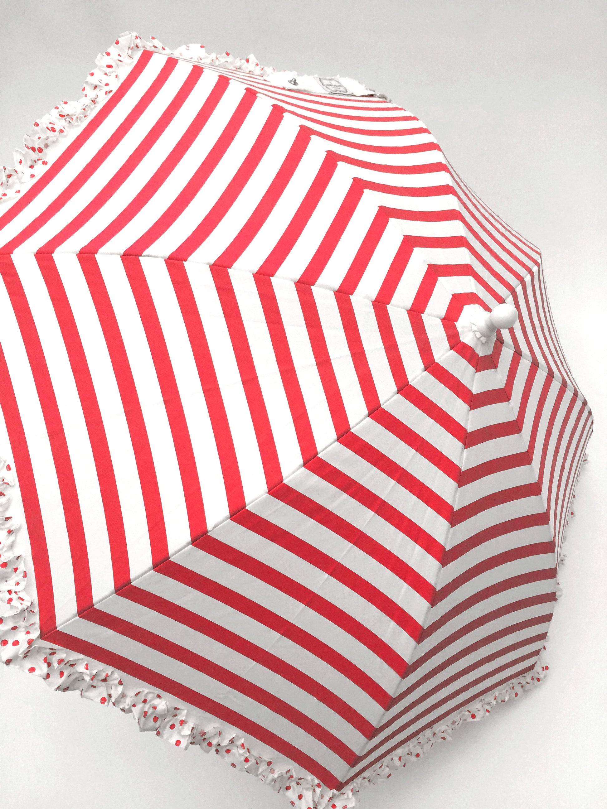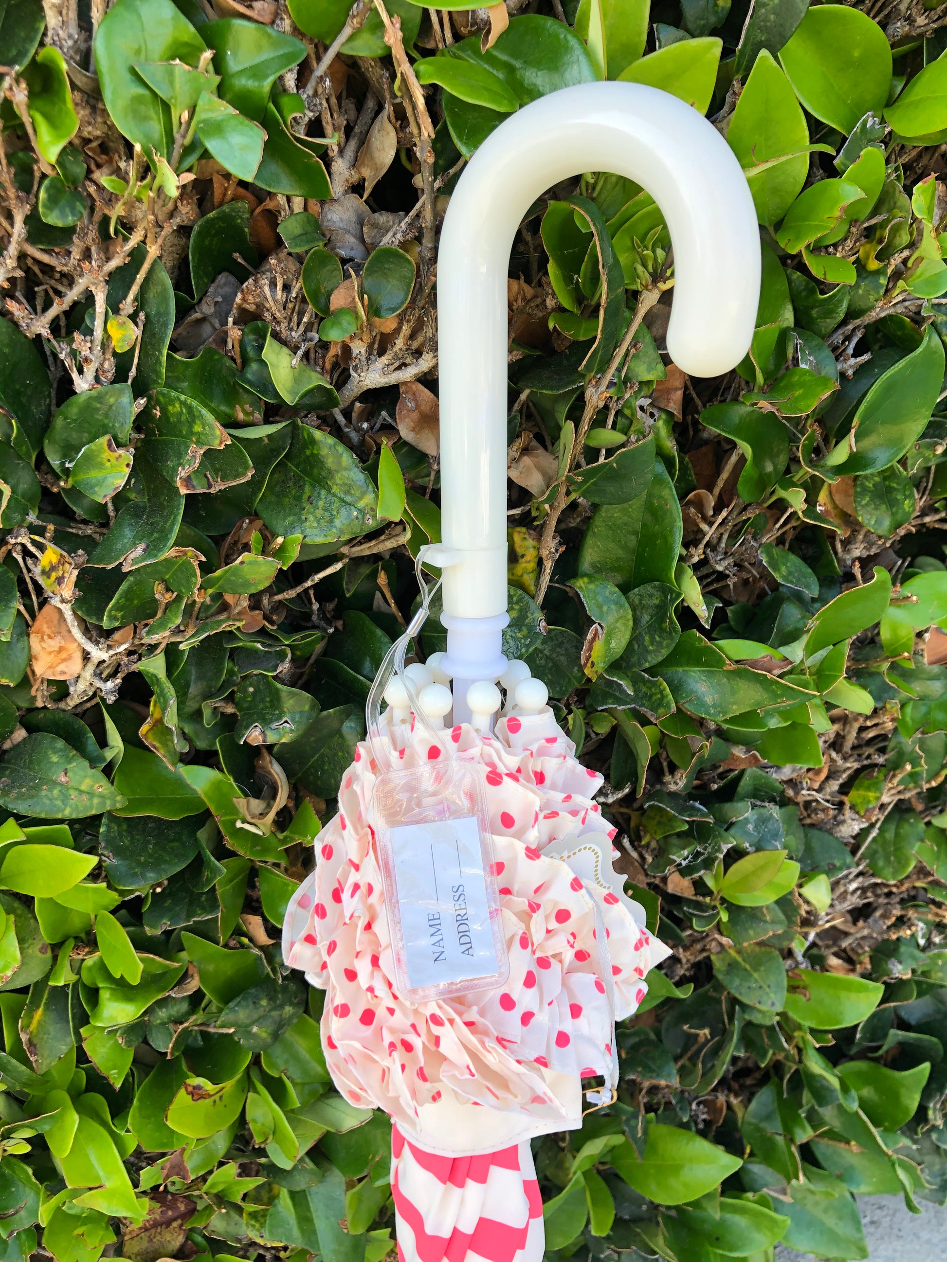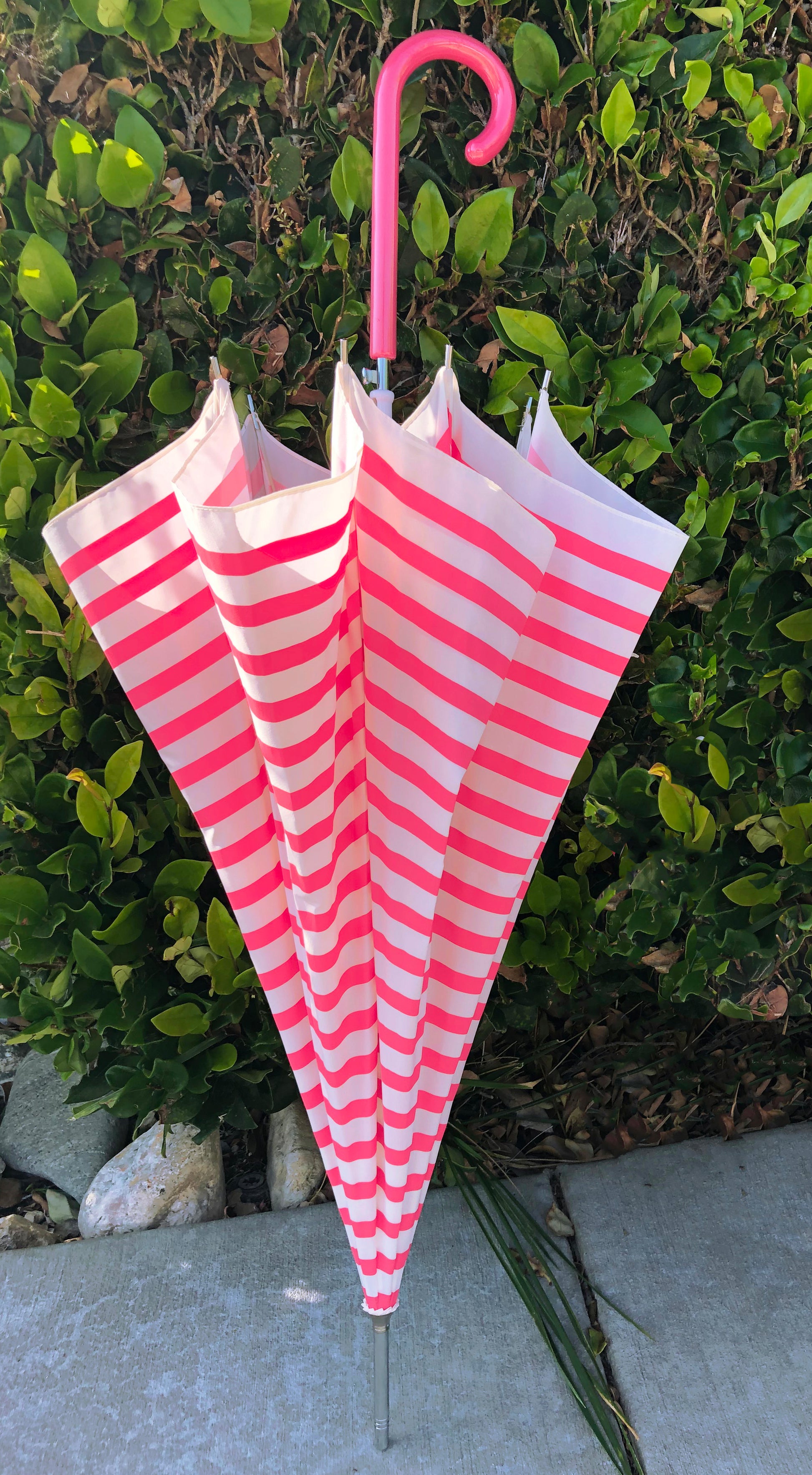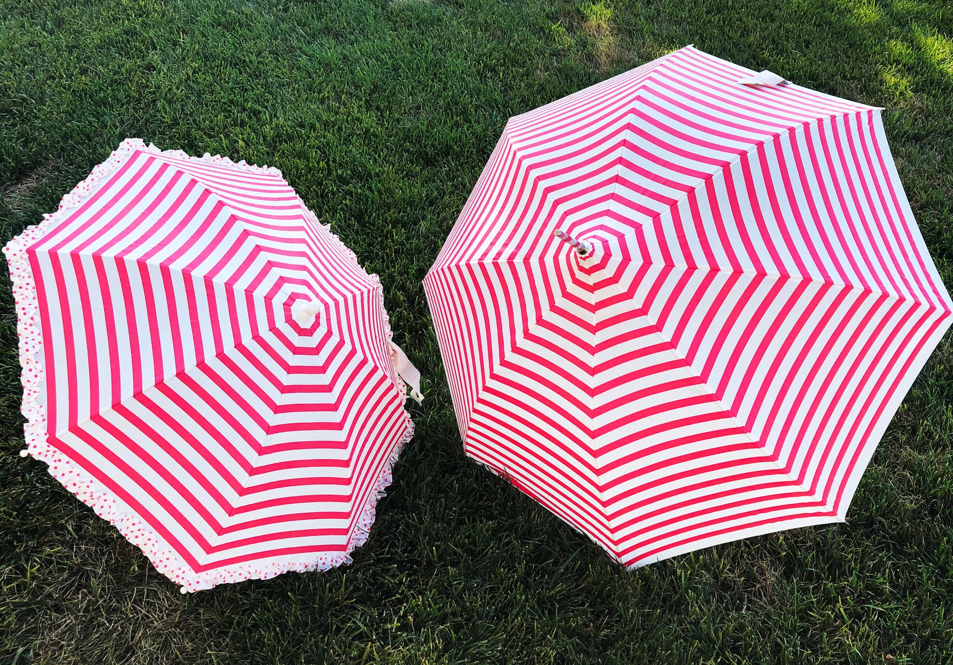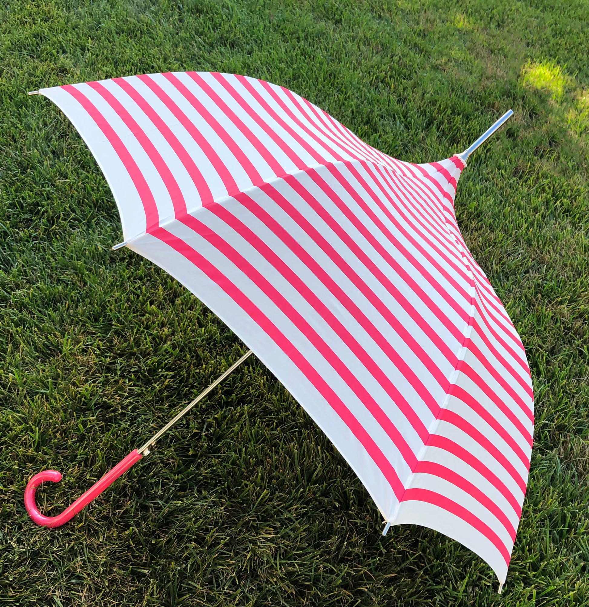 Introducing the charming "Mommy and Me" umbrella set from Lisbeth Dahl, designed to add a touch of elegance and joy to any rainy day. This delightful duo features matching pink and white striped patterns that are sure to brighten the mood. The adult umbrella boasts an elegant dome shape with an automatic opening mechanism for convenience, while the child's version is adorned with cute ruffles and a manual opening system that's easy for little hands to operate. Safety is a priority; the child's umbrella is thoughtfully finished with a smooth tip and safe rib tips to ensure a worry-free experience. Perfect for stylish mothers and their little ones, this set not only keeps you dry but also turns heads with its chic, synchronized look.