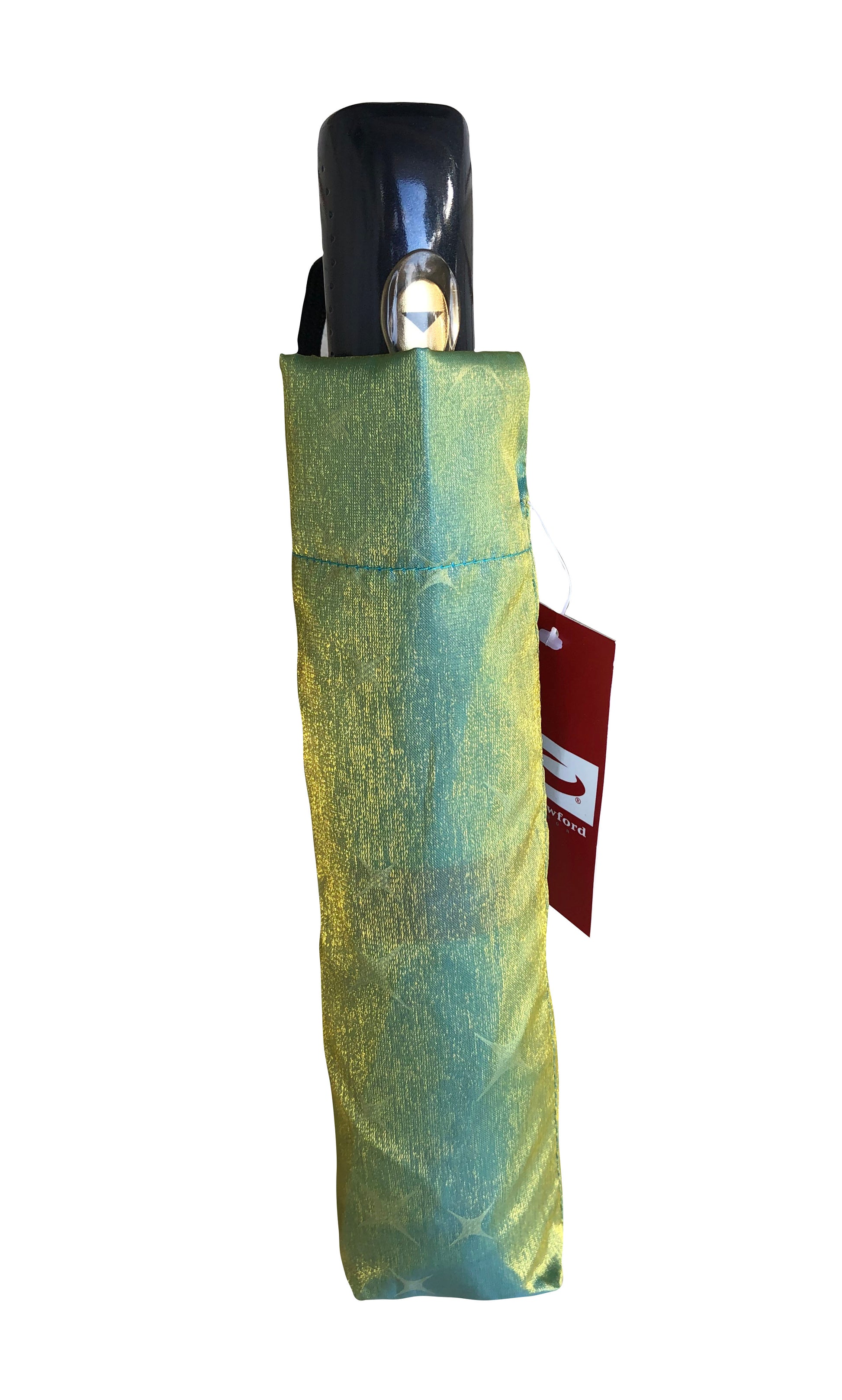 This iridescent green and yellow folding umbrella is designed for those who find joy in the details and believe in making every accessory count. With its shimmering floral patterns and dual-tone elegance, it transforms a simple act of protection into a statement of style. Holding this umbrella, you're not just shielded from the rain; you're enveloped in an aura of sophistication and charm. It's perfect for anyone looking to add a touch of magic to their routine, turning even the dreariest days into moments of beauty and reflection.