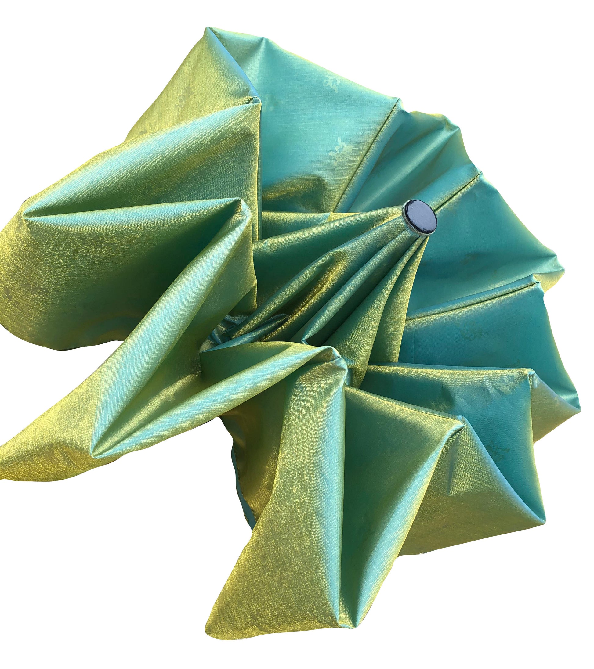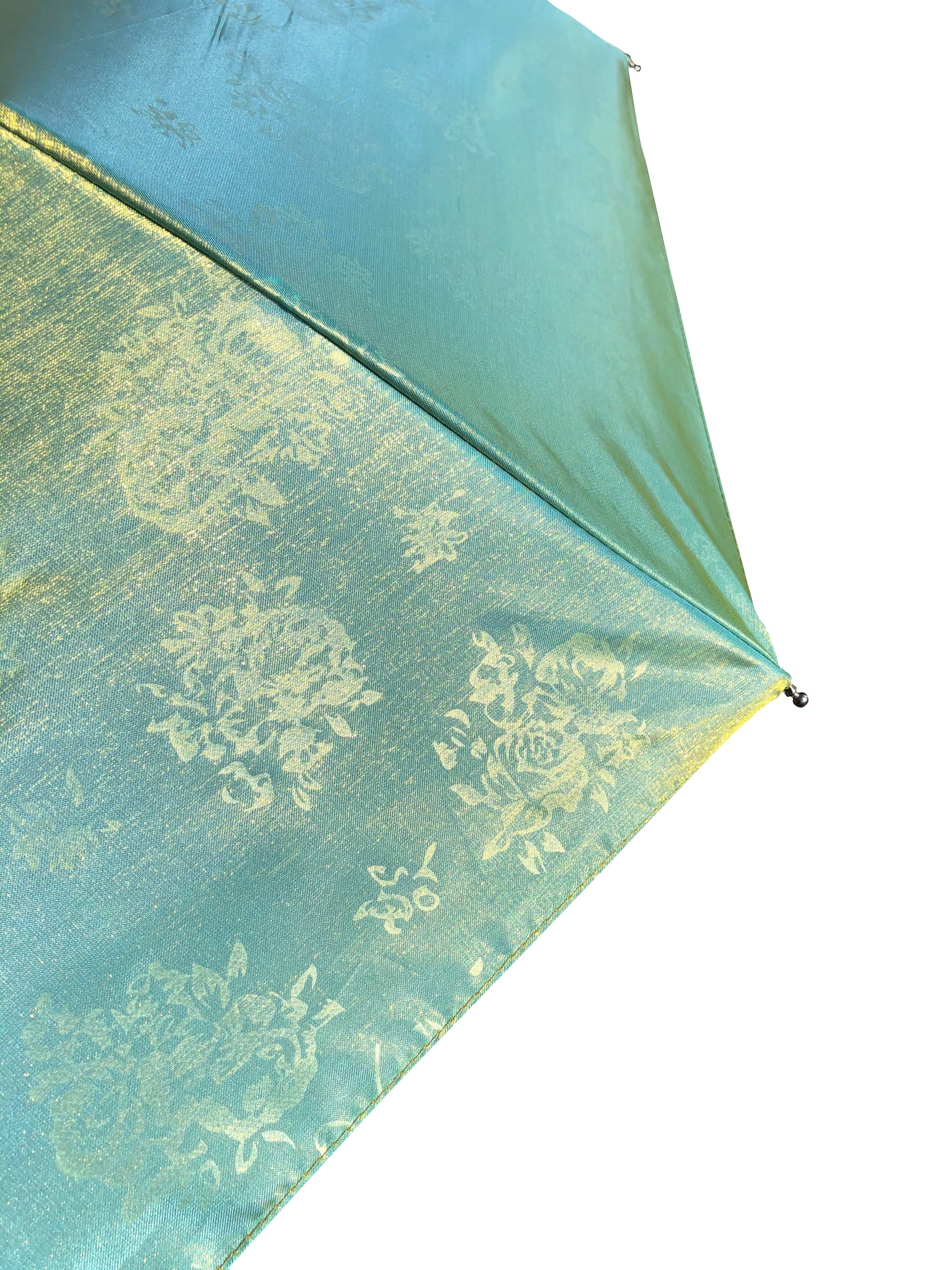 Green Yellow Iridescent Umbrella | 3-Fold Compact | Subtle Floral Design
