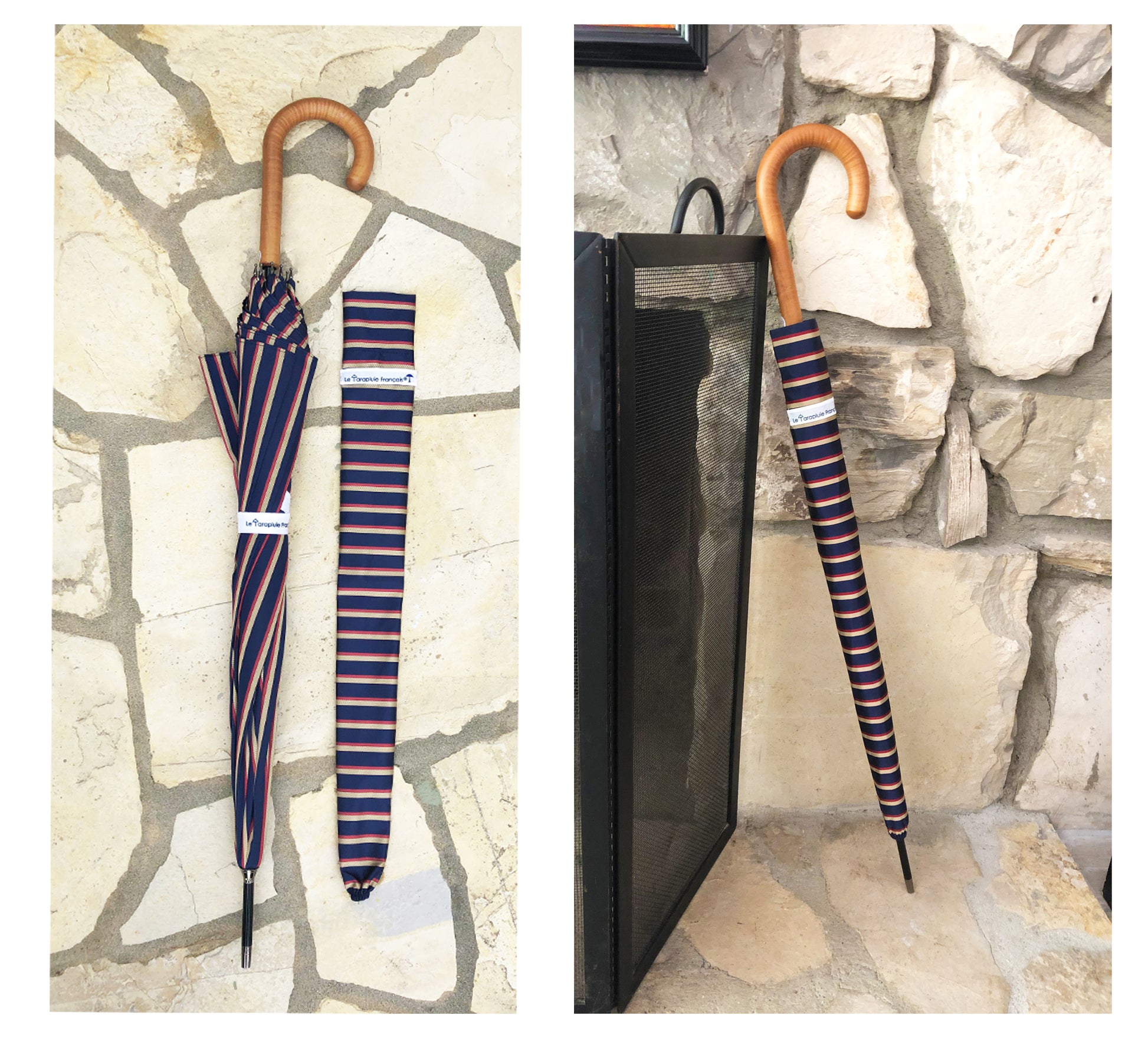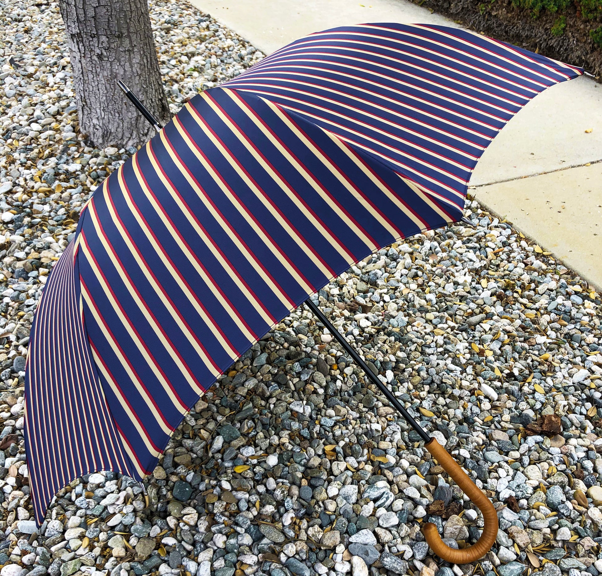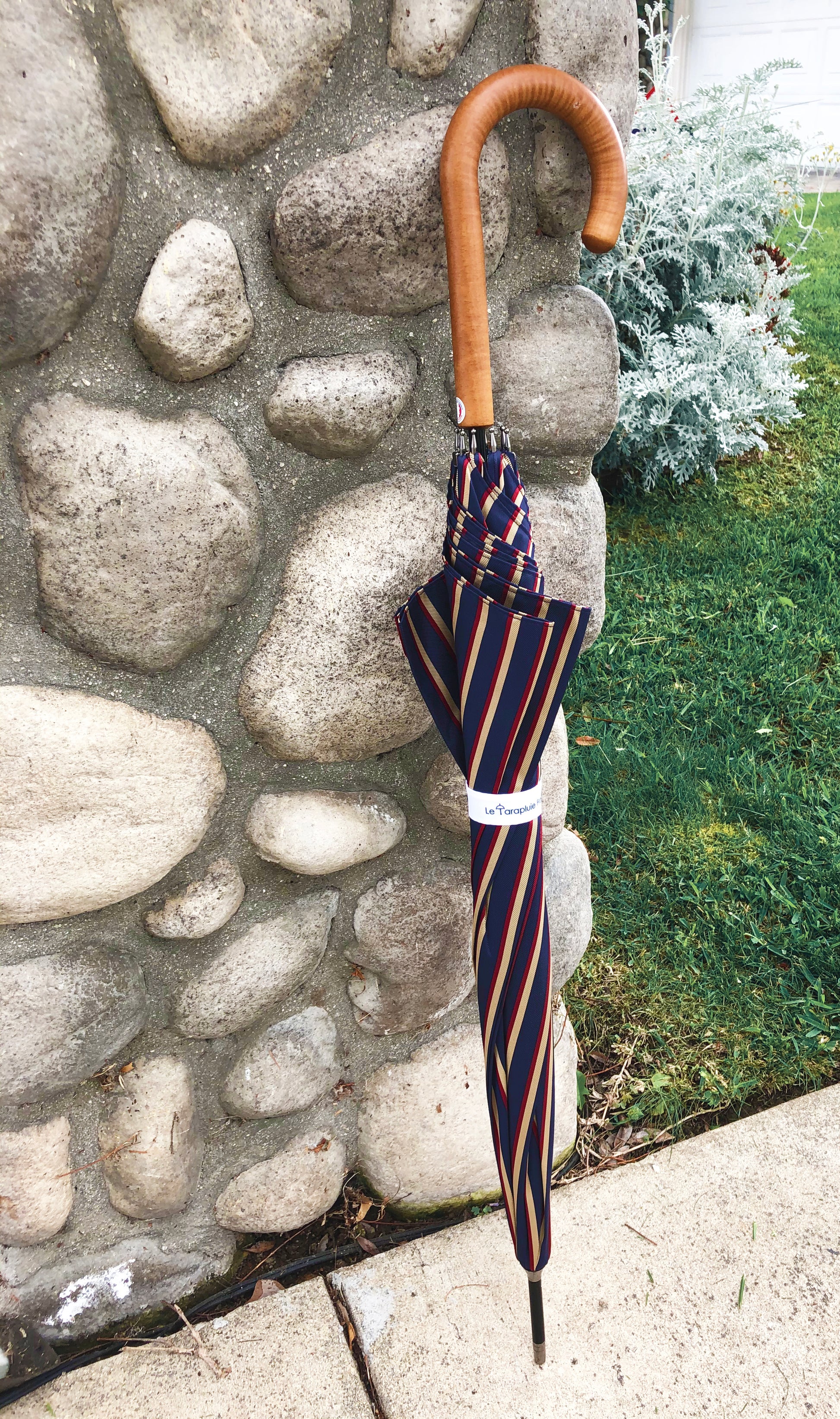 Man Stripes Umbrella Hazelnut Handle | Everyday Luxury Made in France | Free Shipping
