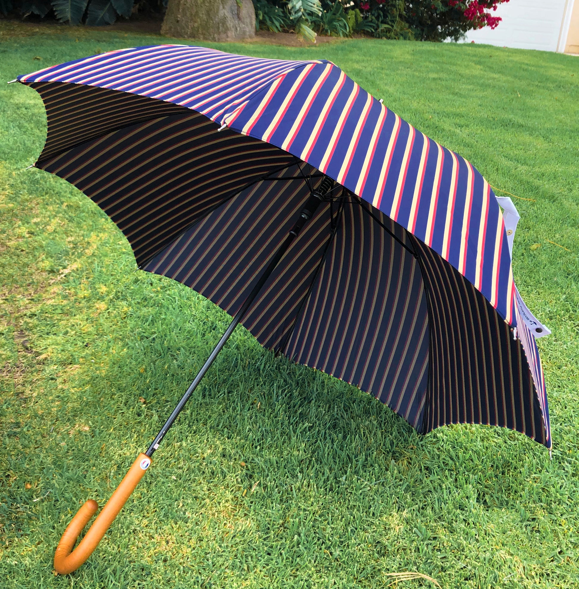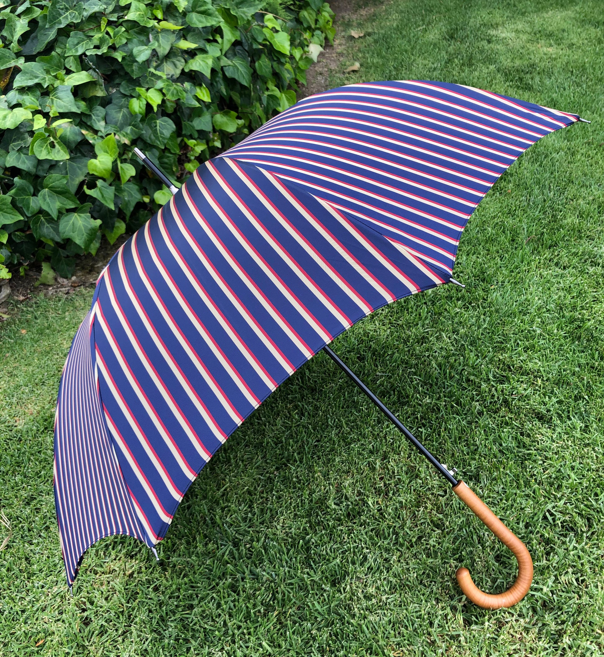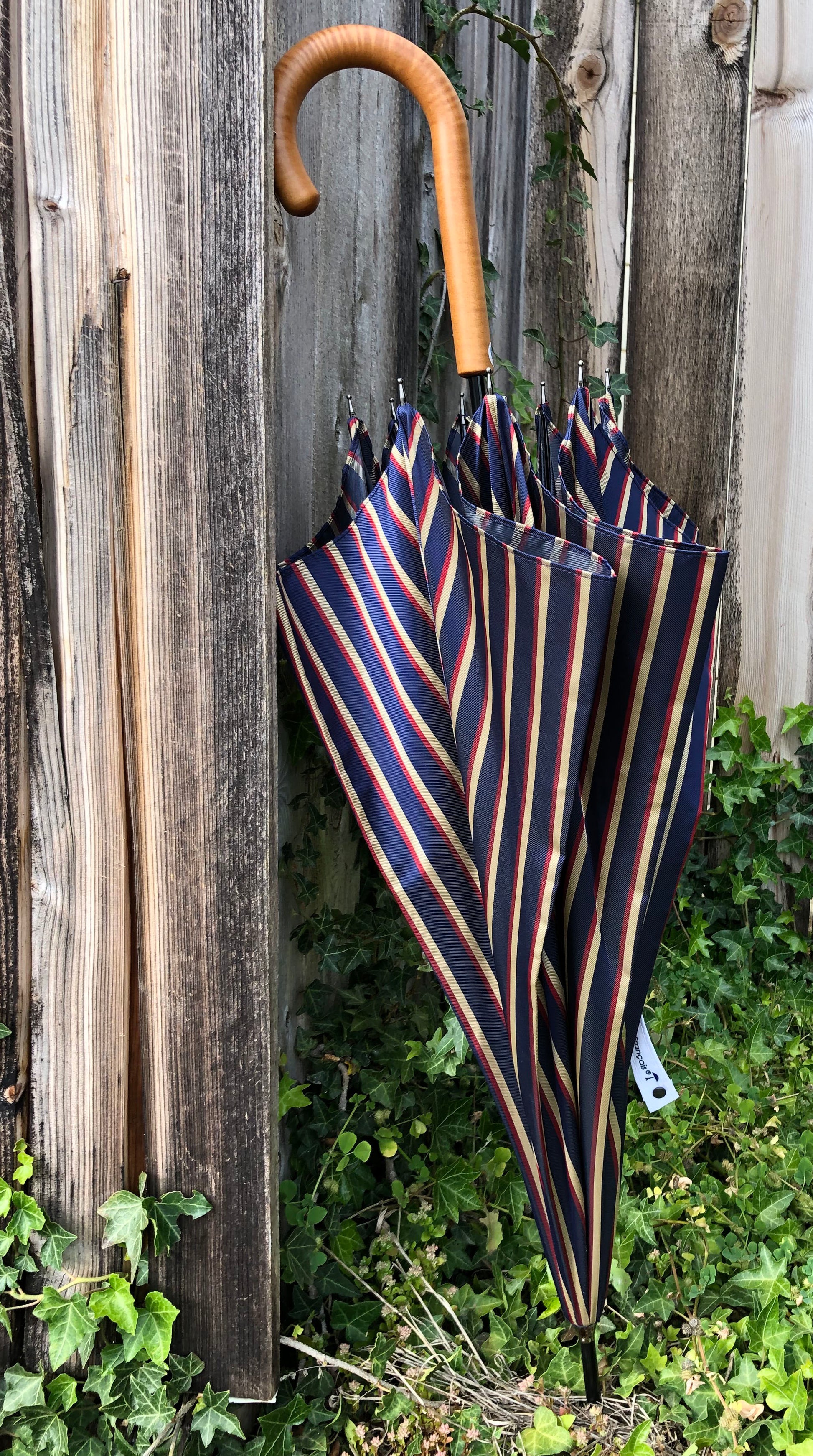 Man Stripes Umbrella Hazelnut Handle | Everyday Luxury Made in France | Free Shipping