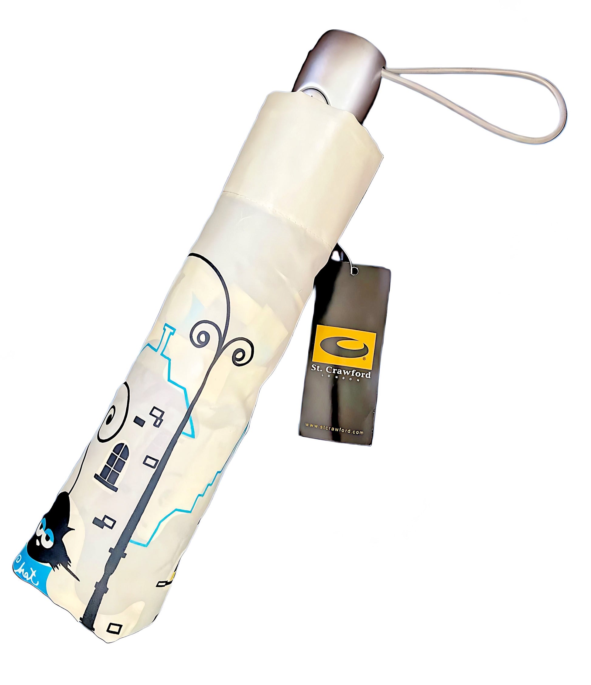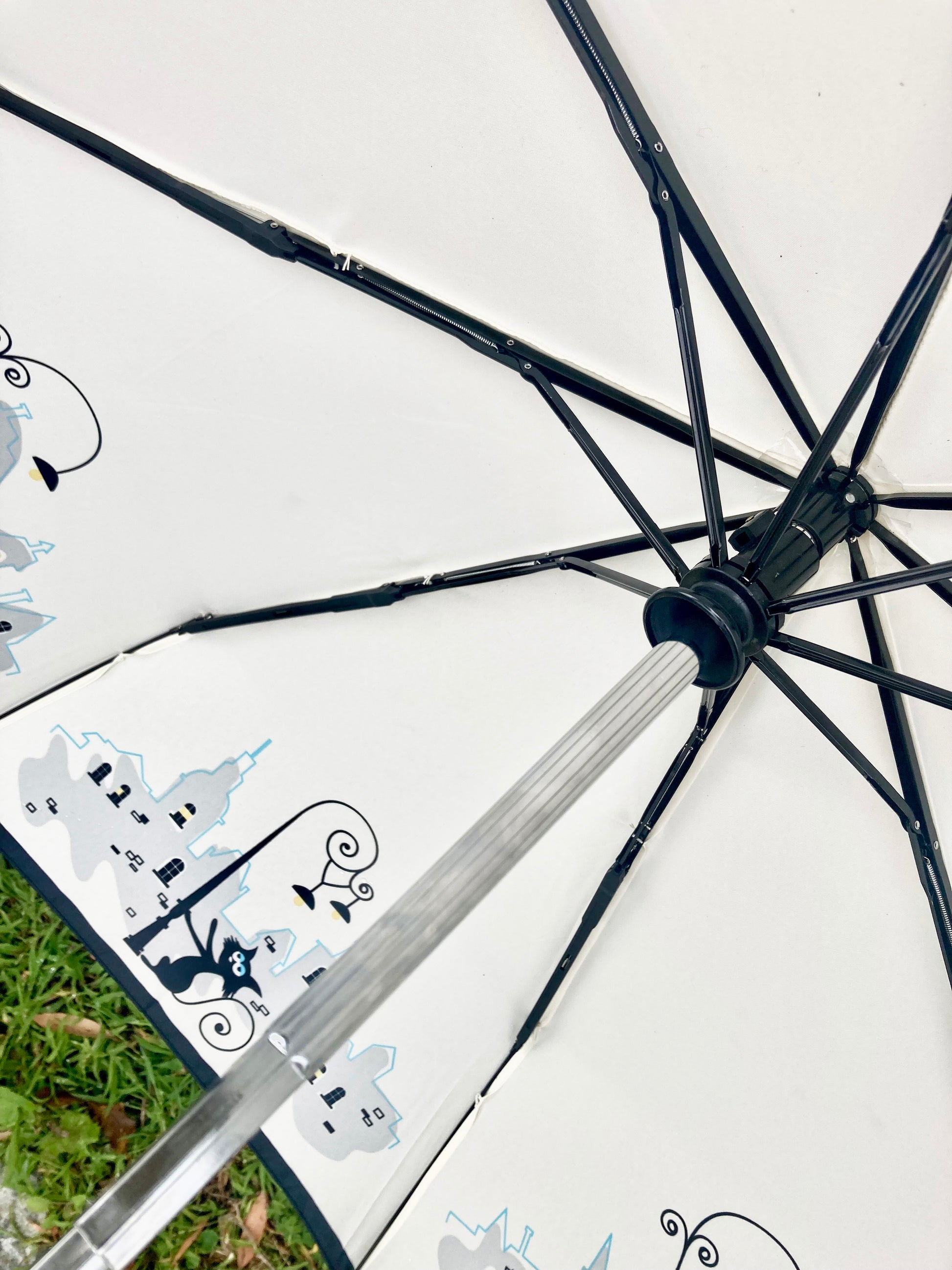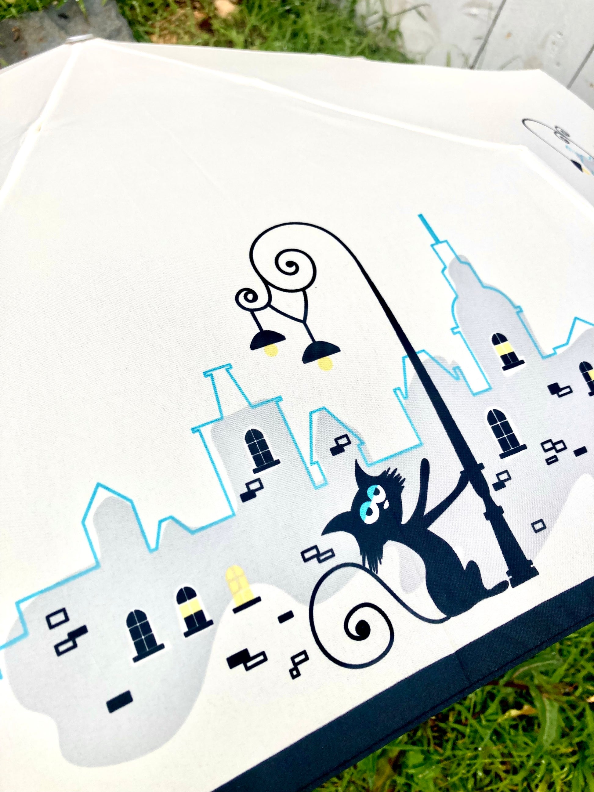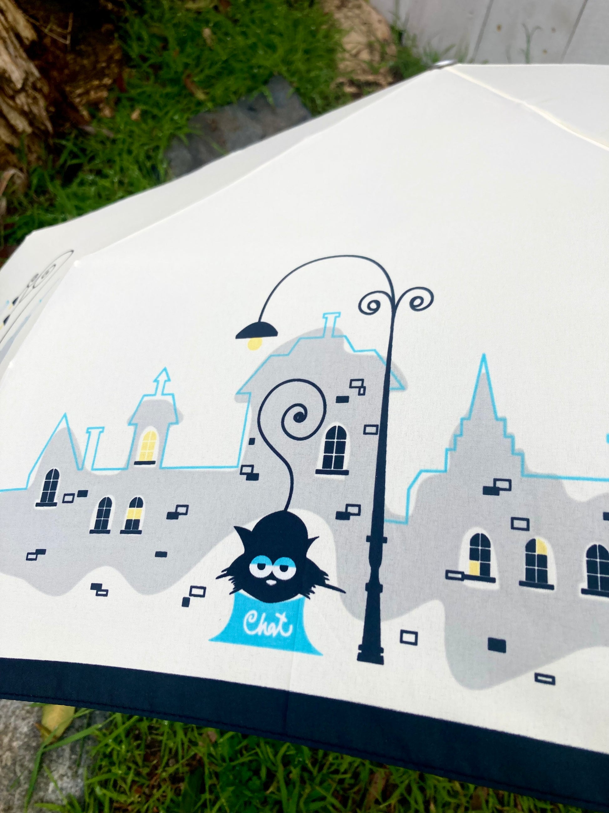 Parisian Cats Folding Umbrella | Sturdy Reinforced Ribs | Auto Open | 2-Step Closing System