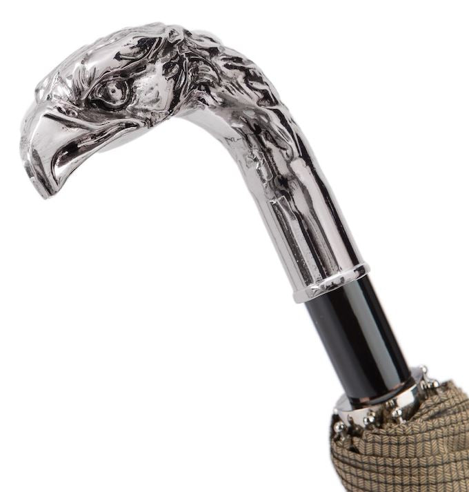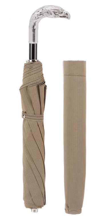 Pasotti Compact Umbrella | Silver Eagle | Tan Canopy