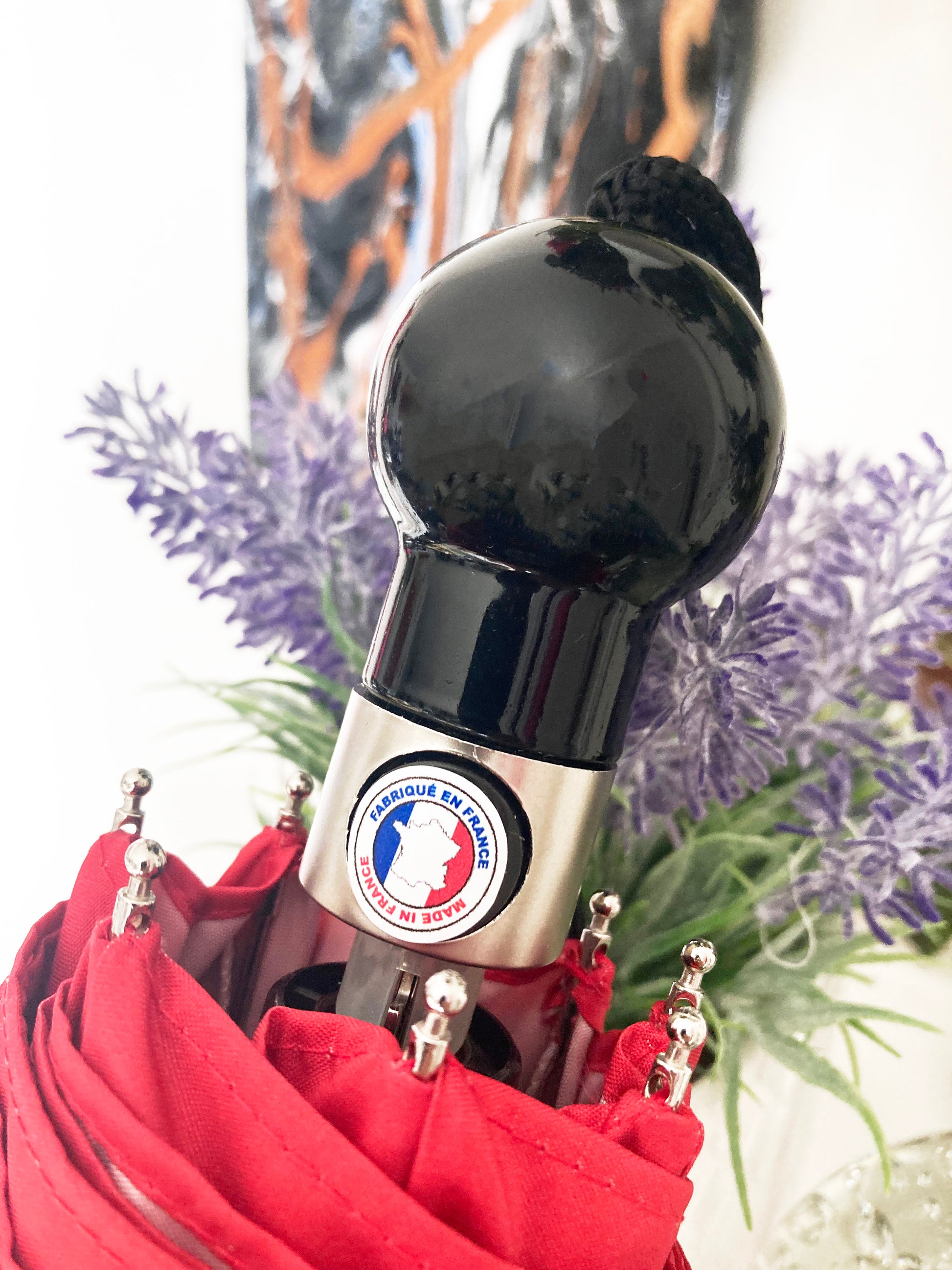 Crafted by hand in France by Guy de Jean, this folding umbrella is a feature of the 'Le Parapluie Français®' ('The French Umbrella') luxury collection, embodying Parisian elegance and exceptional craftsmanship. In 2011, The Guy de Jean family business received the prestigious "Living Heritage Label" from the French government, a testament to their unparalleled expertise and knowledge accumulated since 1920.