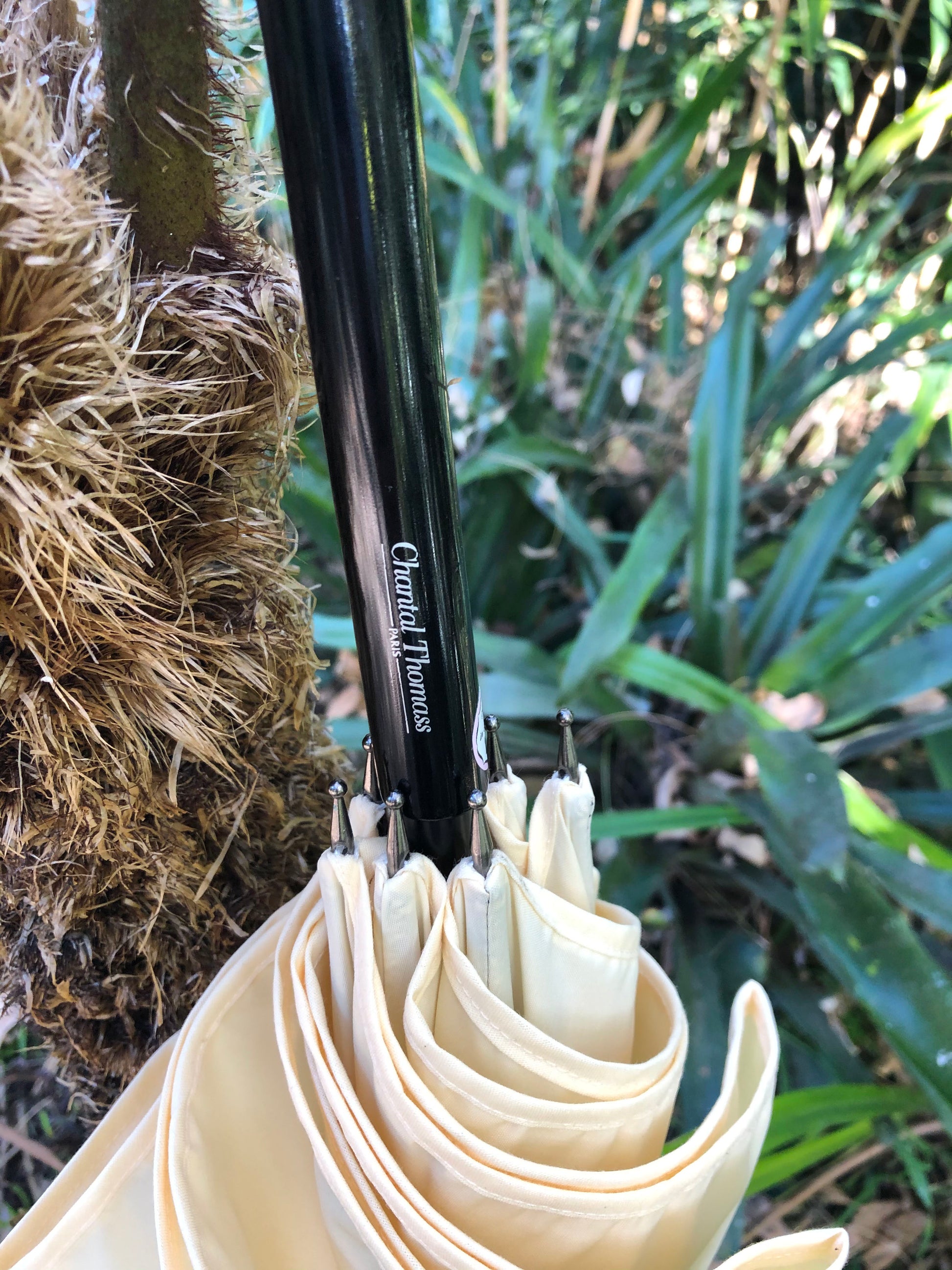 A Chantal Thomass umbrella is always a rare and unique accessory, showcasing exceptional workmanship and luxurious fabrics tested by the French Textile Institute.