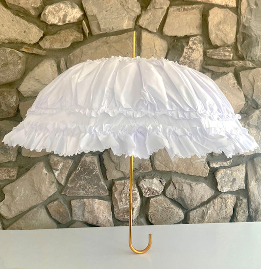 Francesca White Umbrella | Rose Design Lace Inner Layer | Waterproof and Sun Protection