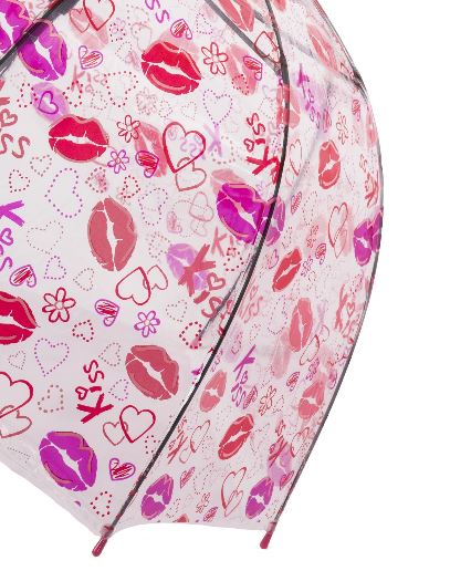 Lips and Kisses Clear Bubble Umbrella | Deep Dome Pink Red Purple Print