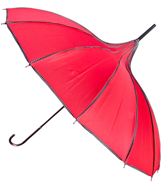 Scarlett Red Pagoda Classic Umbrella | Polka Dots Dividers | 16 Ribs