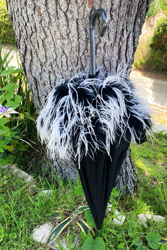 Rare Shaggy Parasol with Sewn on Marabou and Ostrich Trim | Handmade Invisible Stitches