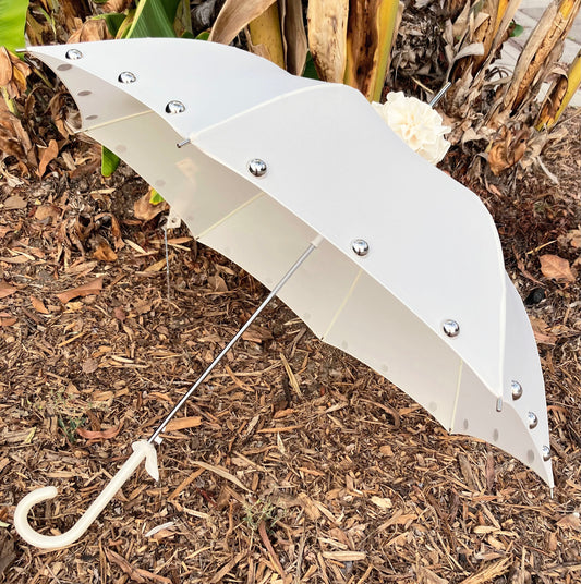 Chantilly Cream Parasol | Half Round Silver Pearls | Made to Order